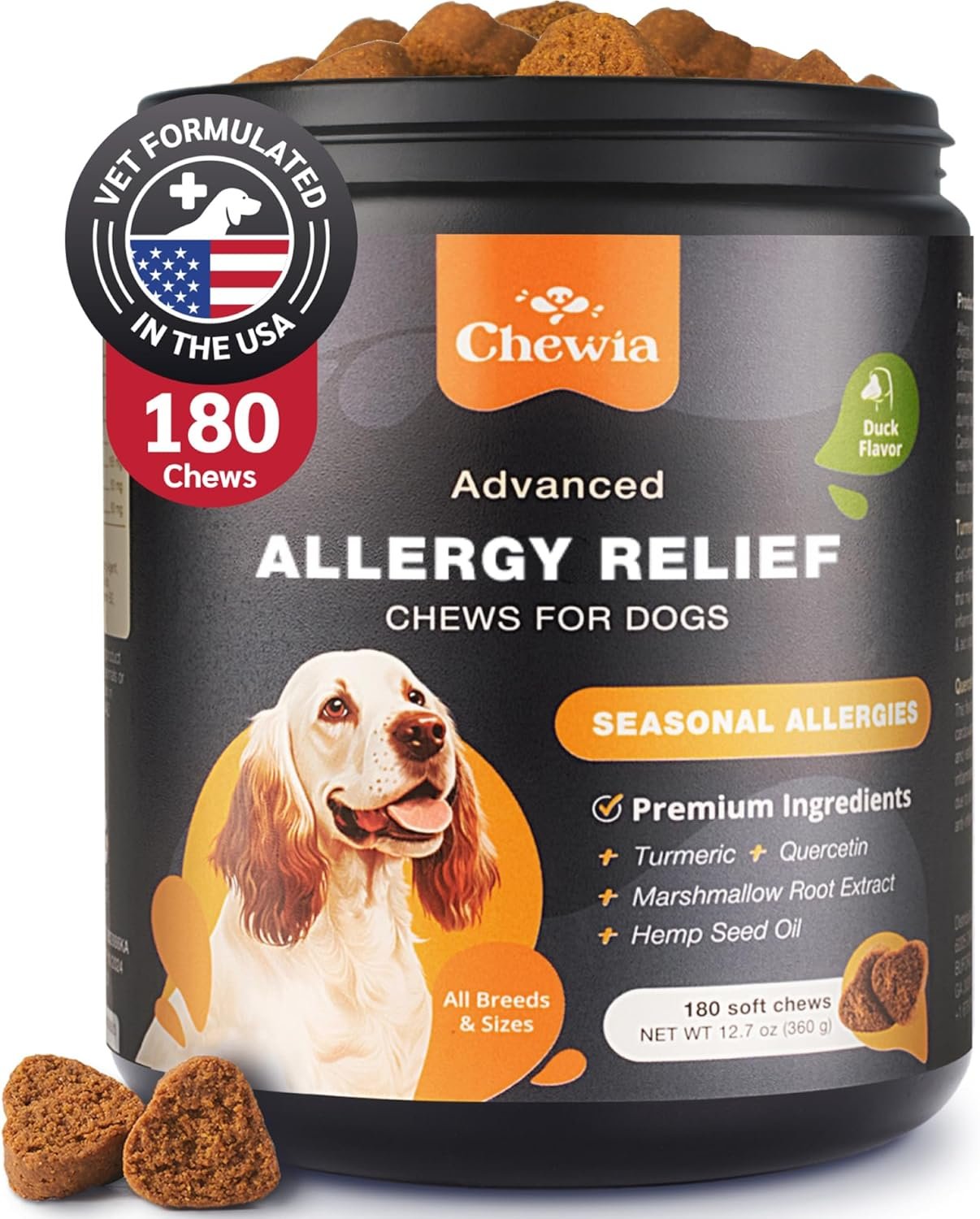 SEASONAL ALLERGY SUPPORT: Get effective dog seasonal allergy relief with our allergy chews for dogs. They soothe skin irritations, reduce inflammation, and strengthen the immune system, ensuring your dog stays comfortable during allergy season