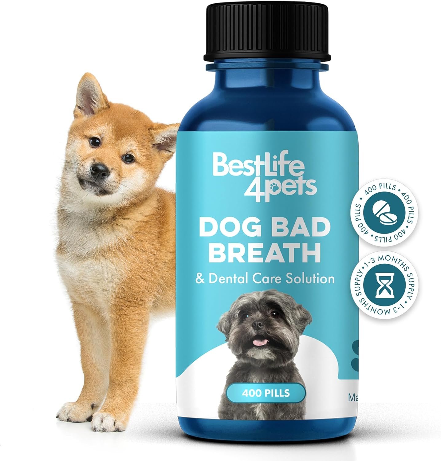 Be the first to review “Dog Bad Breath Treatment & Dog Dental Care Solution – Natural Supplement for Canine Oral Health – Dog Tooth Pain Relief, Plaque Control, Gum Disease, Gingivitis – 400 Odorless, Tasteless Pills”