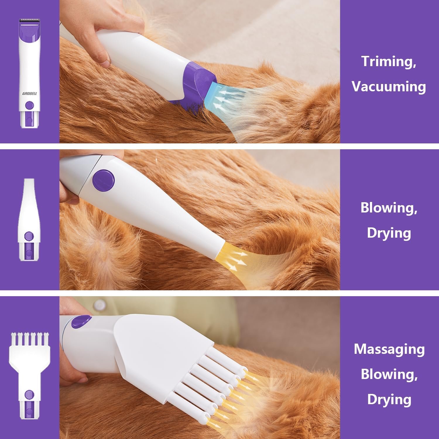 [Multipurpose]: The GROBELL dog Grooming Kit combines vacuum cleaning, hair drying, and grooming functions, allowing you to groom and dry your dogs, cats, rabbits, and other animals, saving you the cost of regular visits to the grooming salon.