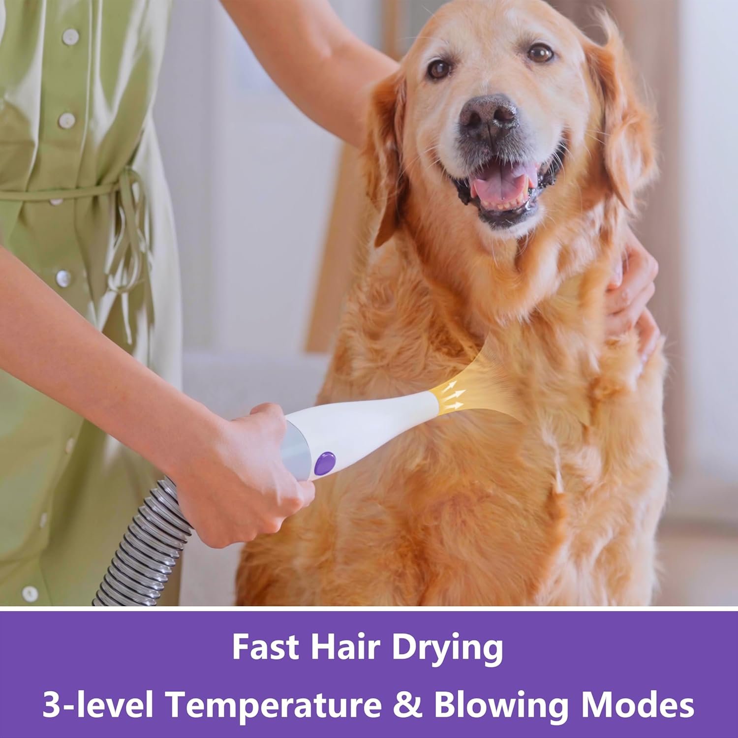 [Adjustable Blow-Drying Temperature and Speed]: The dryer function offers three temperature settings and three-speed settings, providing a complete grooming experience by effectively drying your pet’s fur and keeping it straight, fluffy, and clean.