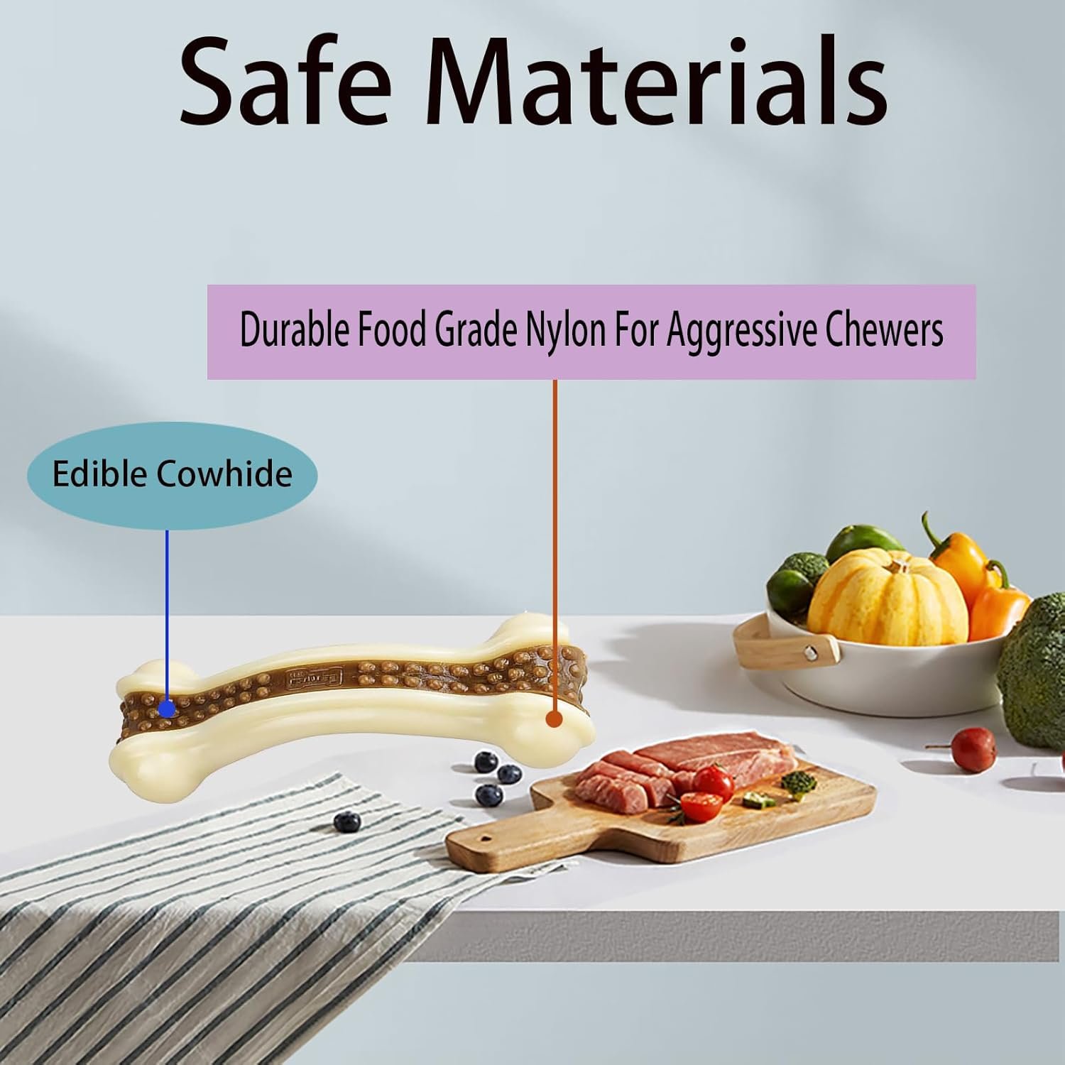 Safe Dog Toys:Made of Durable Food-Grade Nylon And Edible Cowhide,Free of BPA and phthalates, Safe, Non-toxic, Help clean teeth and control plaque and tartar during the chewing process.