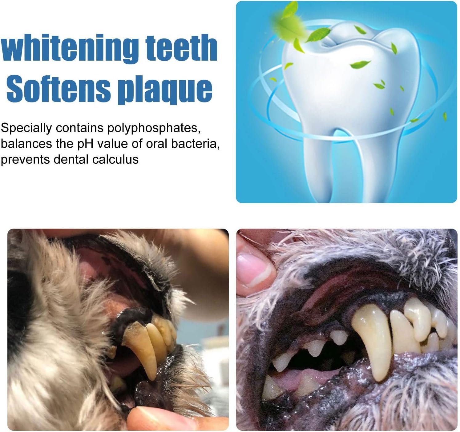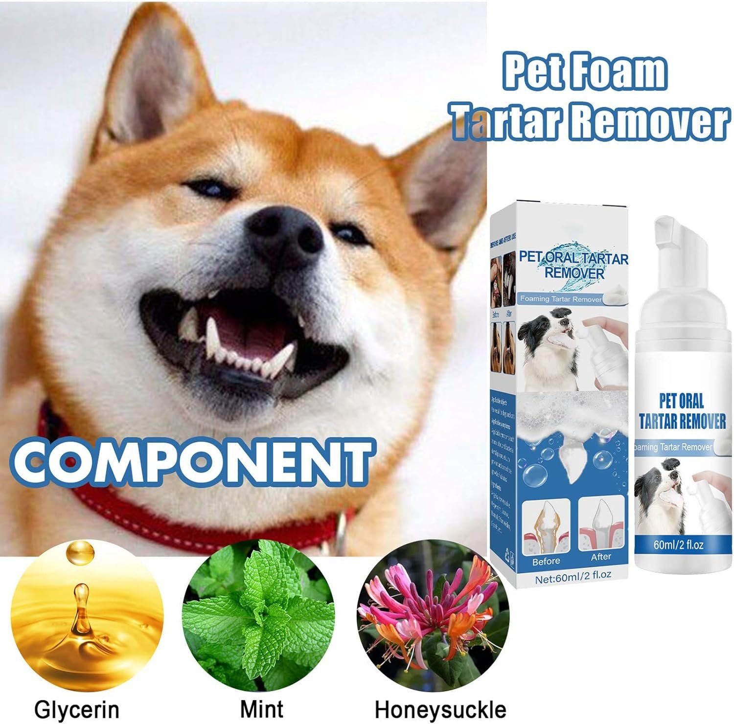 【Natural Ingredients】Our dog teeth cleaning foam contains nourishing ingredients such as honeysuckle, peppermint, glycerin and more. This allows you to maintain your dog’s oral hygiene on a daily basis.