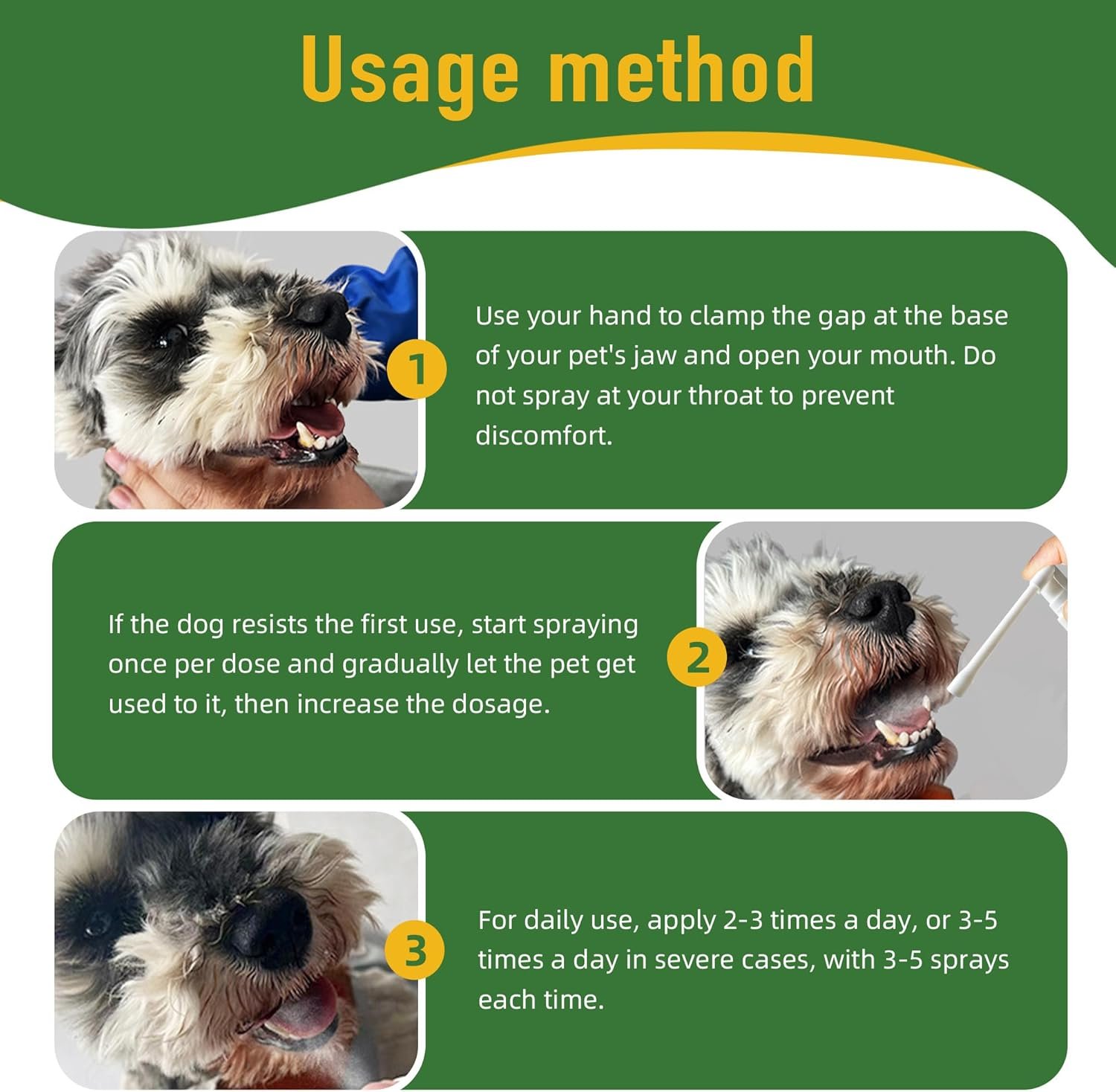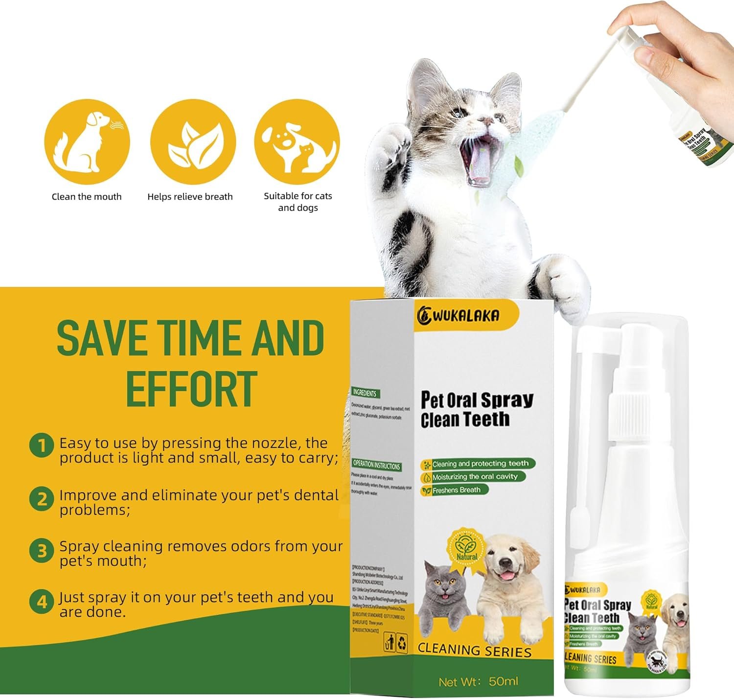 Easy to use- Our pet oral spray clean teeth is incredibly easy to use. Simply spray directly into your pet’s mouth and let the powerful formula do the rest.
