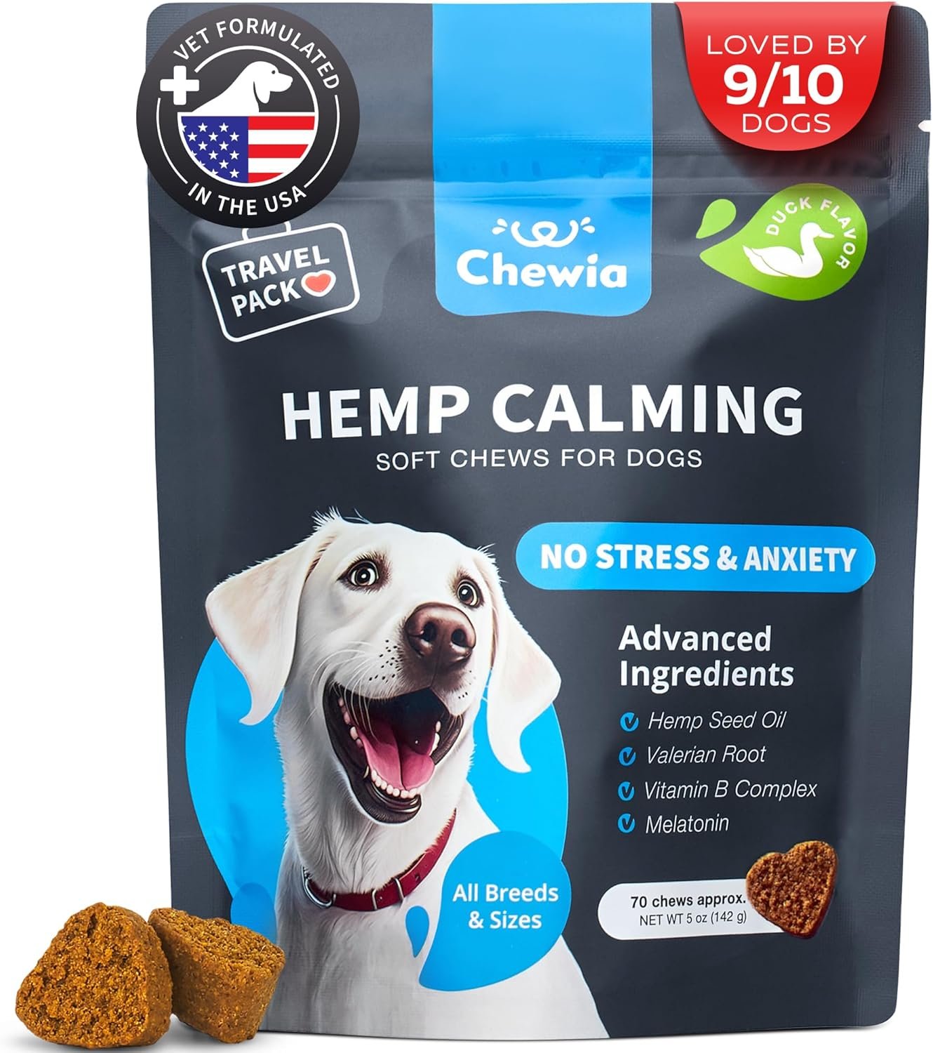 STRESS & ANXIETY RELIEF FOR DOGS: Our calming chews for dogs anxiety are infused with L-Theanine, Hemp Seed Oil, Chamomile Extract, and Valerian Root, soothing your furry companion’s stress relief