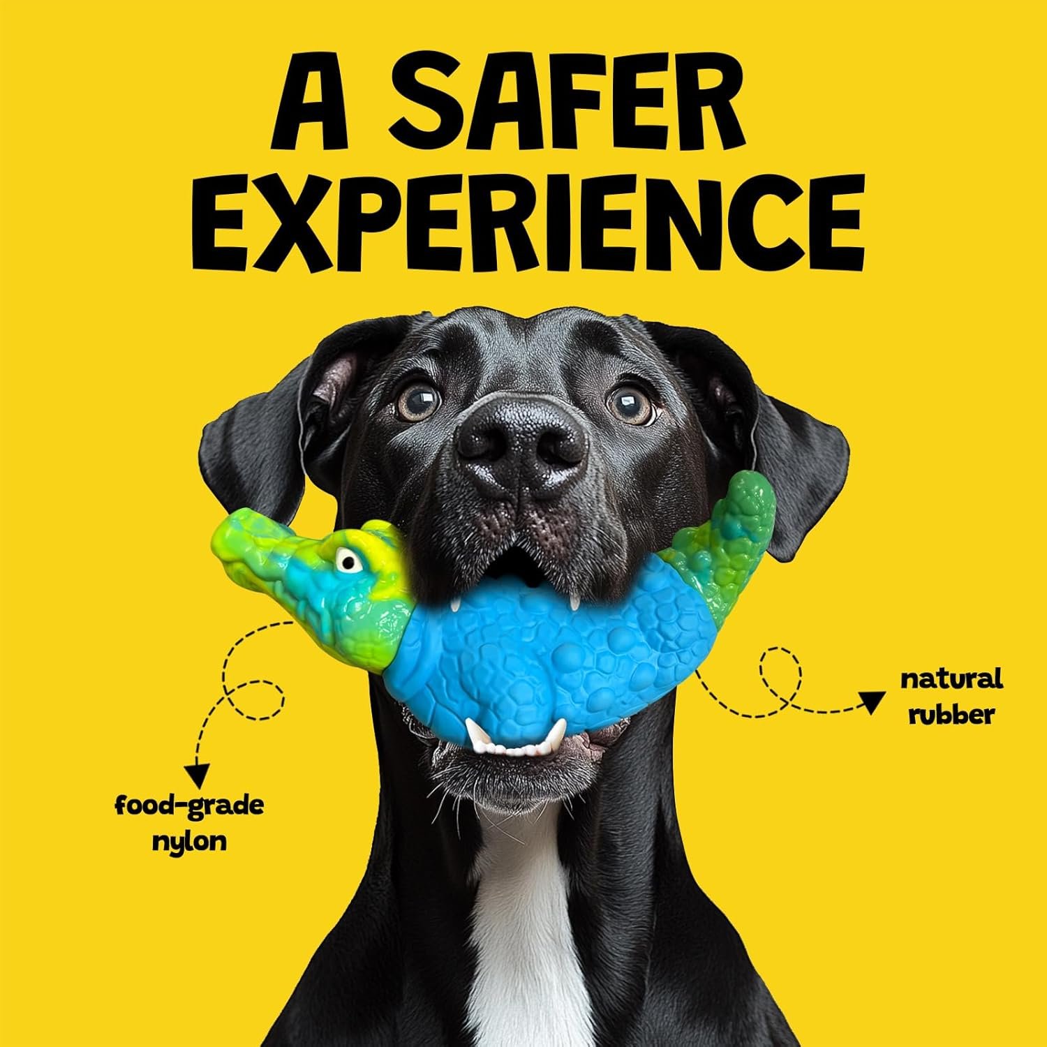 Upgraded Materials : Our dog toys feature a head and tail crafted from food-grade nylon, known for its flexibility and durability, while the body is made from natural rubber for a chewier experience. It also helps massage gums and promote dental health in dogs