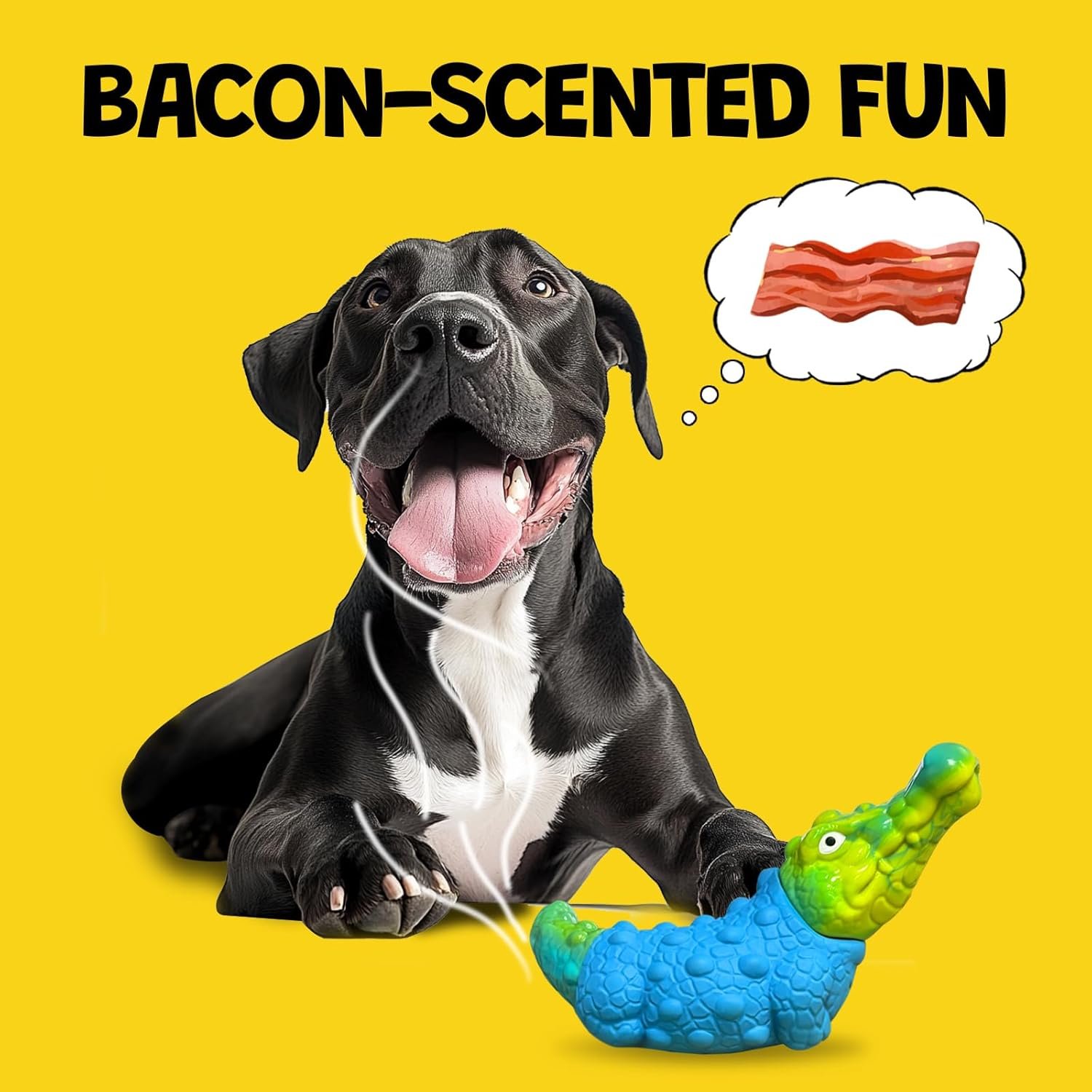 Bacon-Scented Fun : Dogs interact with the scents of food. Our dog toys infuses the rubber materials with a bacon scent. The bacon scent is continuously released as your dogs chew, keeping them engaged for hours of play