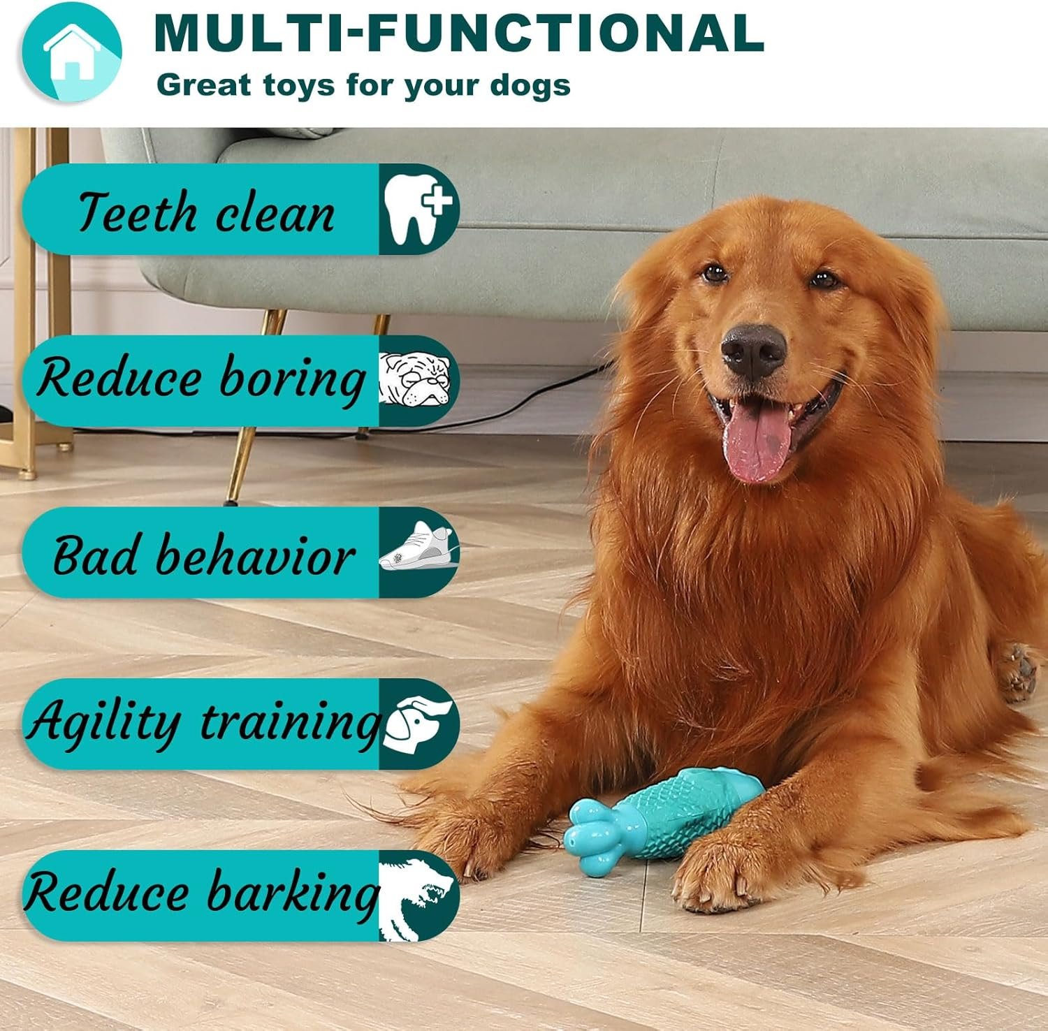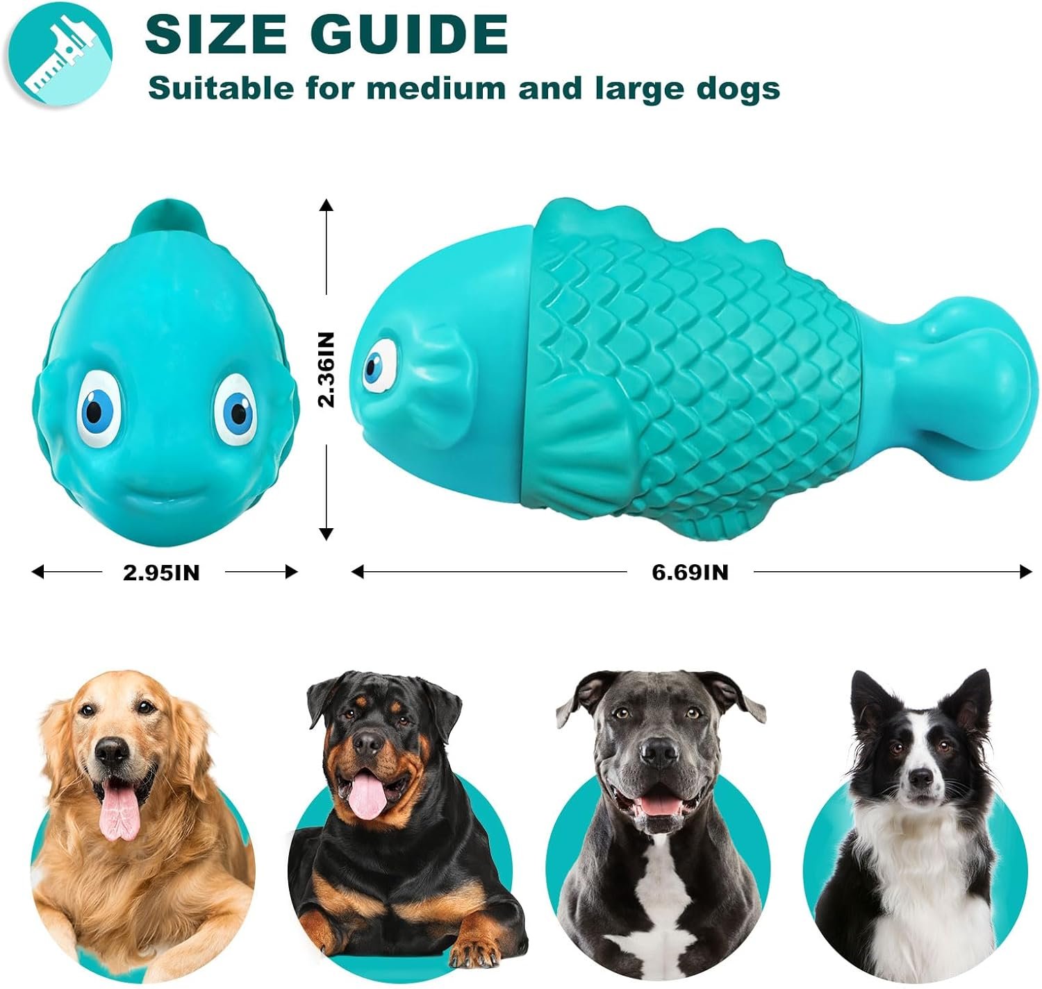 Dog Toys For Aggressive Chewers: Are you suffering from dogs howling a lot? Our guaranteed indestructible dog toys for aggressive chewers large breed can solve this problem well! With fish-shaped design, the most indestructible dog toys for large dogs aggressive chewers can quickly catch dogs’ eyes. Dogs can relieve boredom by chewing our large dog chew toy for aggressive chewers large breed. Chewing the rubber squeaky dog toys for aggressive chewers help dogs burn fat and stay in shape