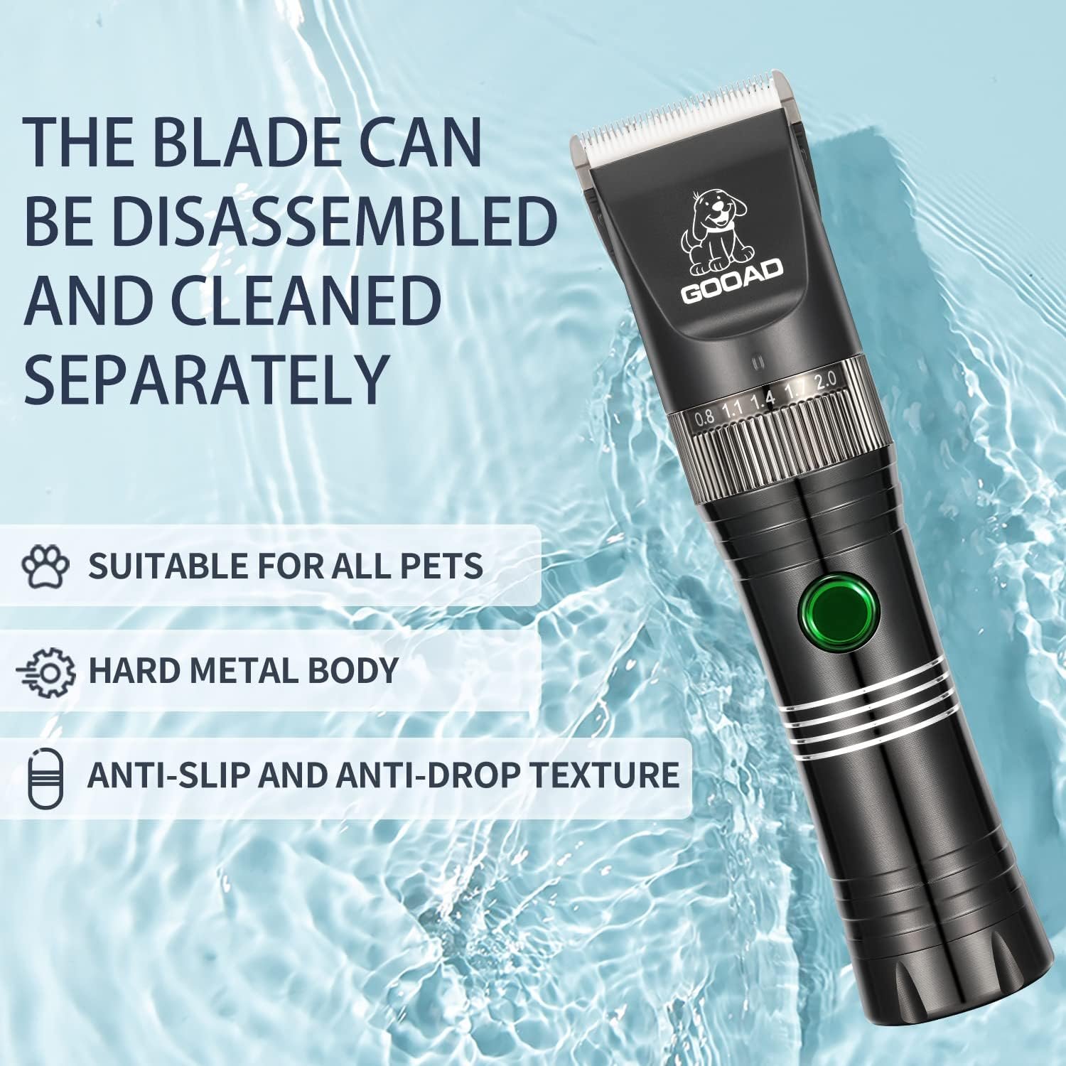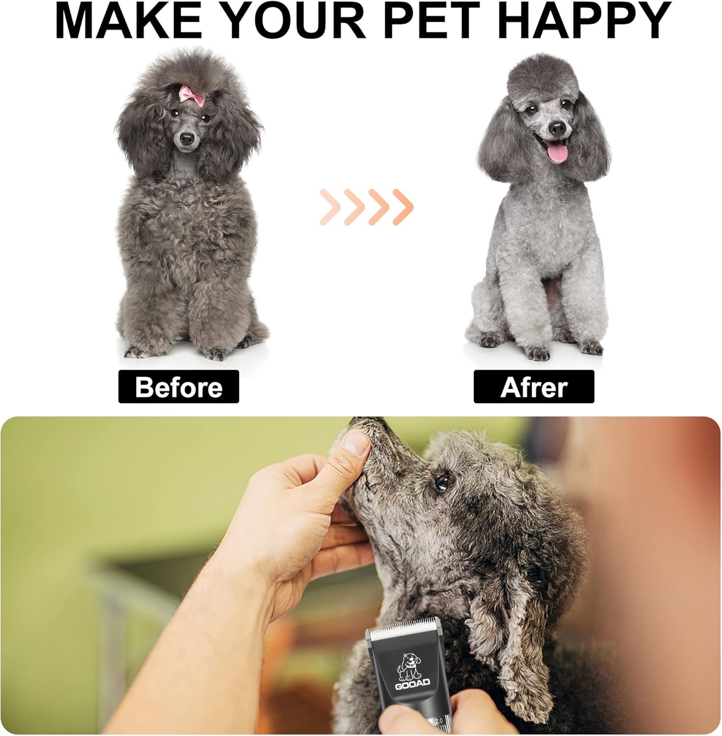 Low Noise: GOOAD dog grooming clippers is made of heavy duty motor, suitable for all hair types which runs at low noise and vibration giving you a ideal harmony of powerful clipping and ultra-quiet operation. Now your dog cat will not be scared of grooming anymore with our quiet and pet friendly clipper.