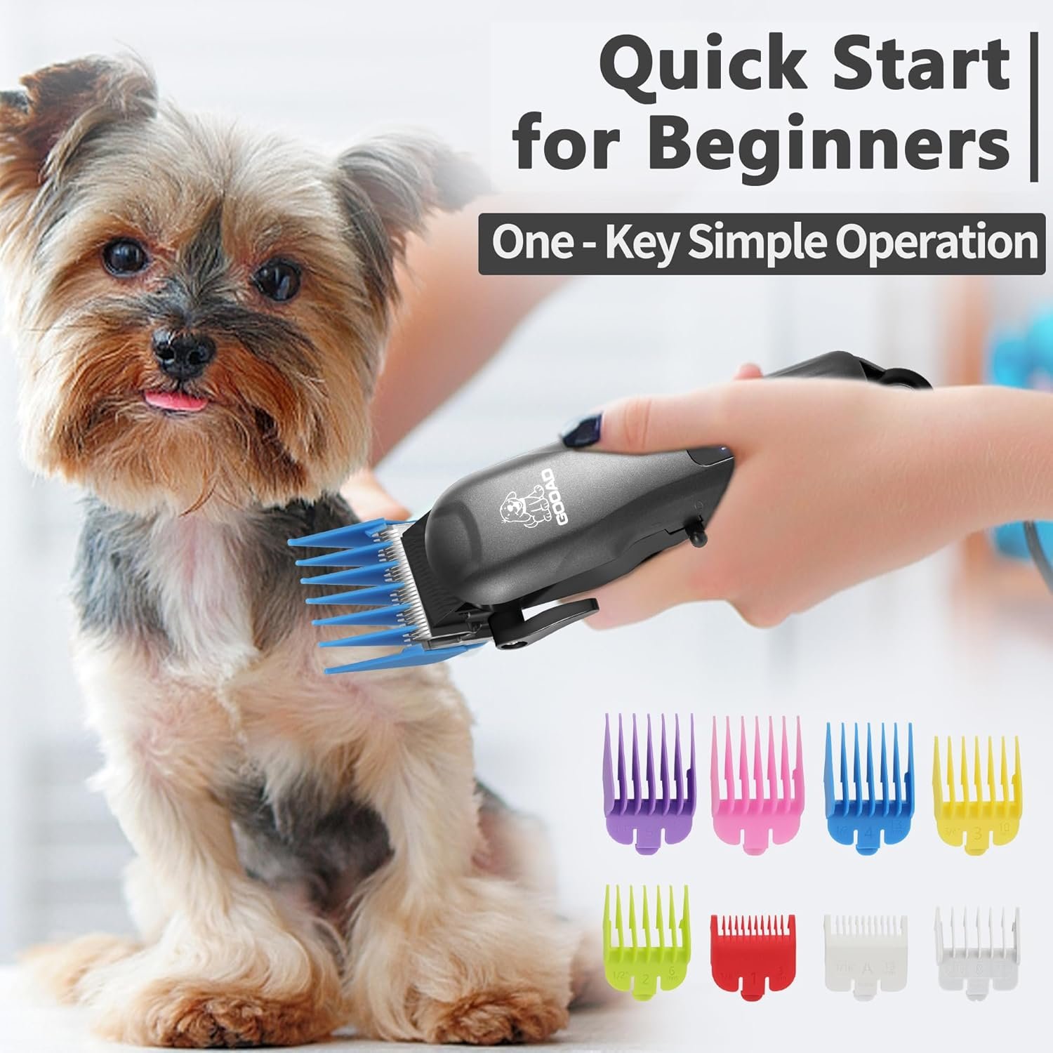 【Complete Kit for Pet Grooming】: 8 limit comb , 1 pet steel comb , 1 type a cutter head , 1 charger , 1 pet hair clipper , 1 cleaning brush , 1 scissors , 1 toolkit , 1 manual .We Have All The Tools Needed For Dog Grooming.