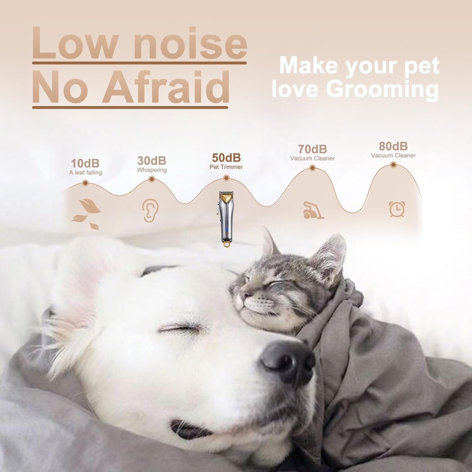 【Low Vibration and Quiet Design】The noise when the dog grooming clippers is working idle is only about 50db, and neither pet dogs nor cats will be frightened by it. Easy to achieve simple, affordable grooming for dogs and cats at home!
