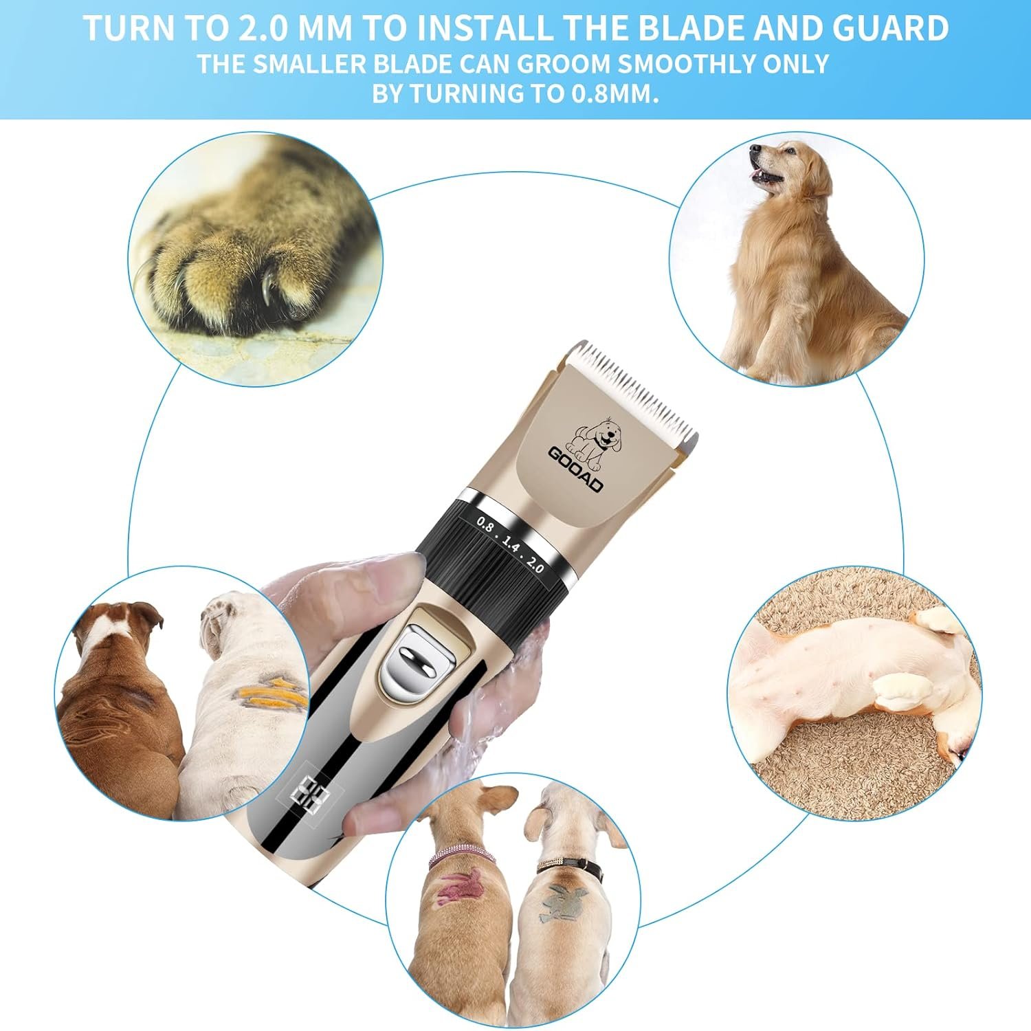 Dog Clippers Grooming Kit and Paw Trimmer,Low Noise,Electric Quiet,Rechargeable,Cordless, Pet Hair Clippers for Thick Coats, Dog Trimmer Grooming Tool, Shaver for Small and Large Dogs Cats
