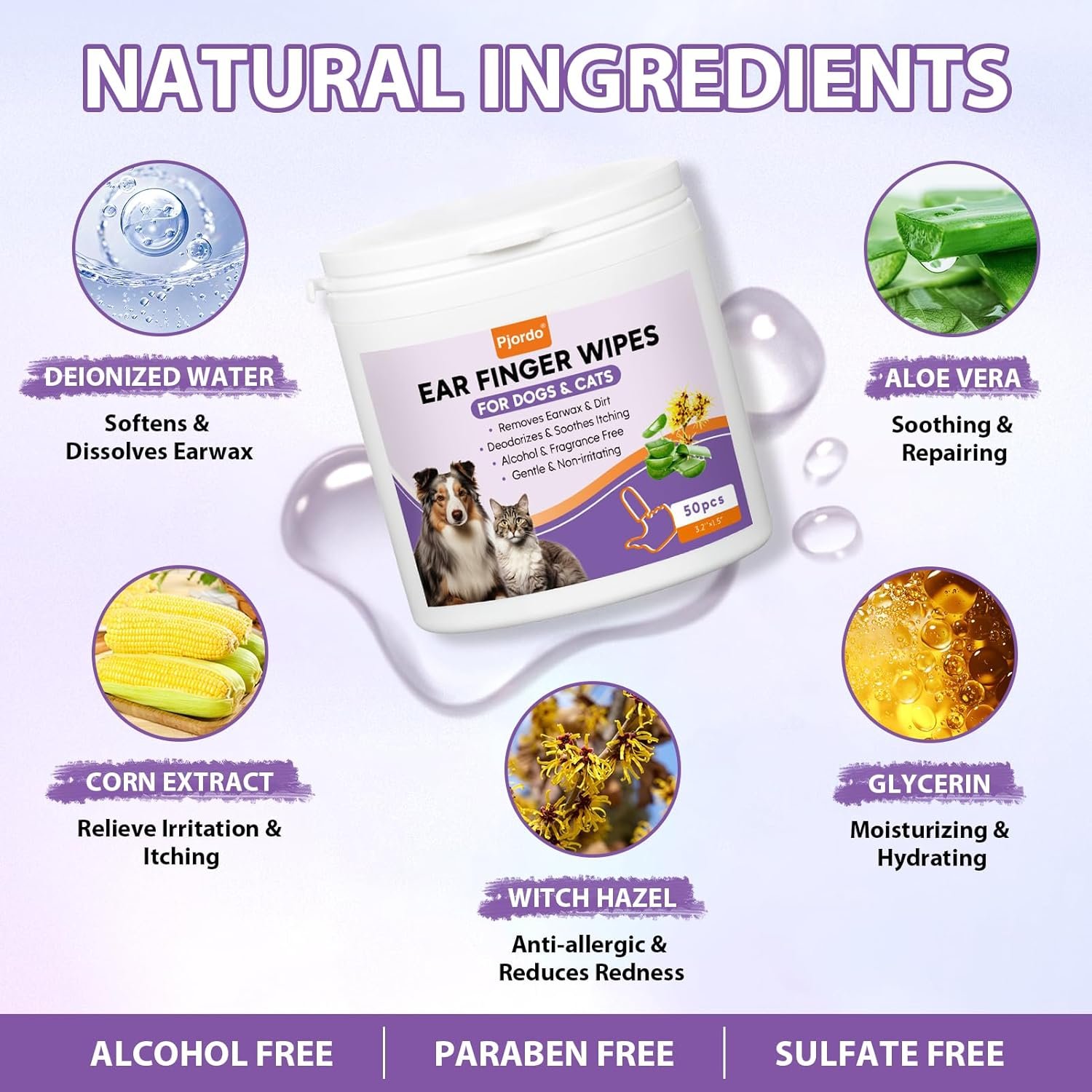 Hydrating Touch, Fully Moisturizing: The ample moisture in the pet ear finger wipes softens and dissolves stubborn earwax, helping to clean pet ears thoroughly without damaging ears. The soft and comfortable dog ear cleaning finger wipes gives no pressure on on your pup’s sensitive ears. The hydrating touch can effectively soothe dry skin in and around the ears.