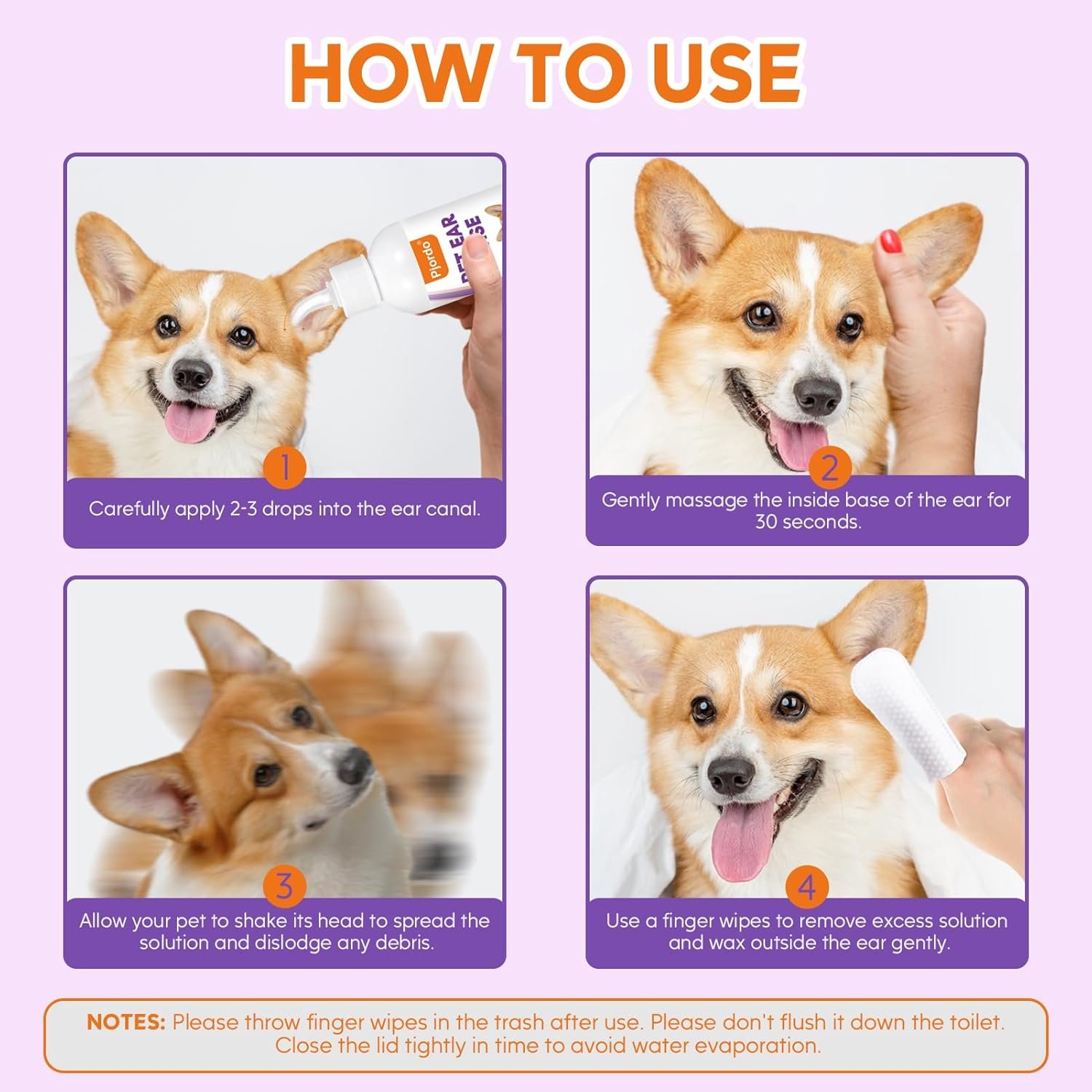 Pet Ear Cleaner: Dog ear rinse has an extended silicone dropper, which is soft and bendable and better fits the ear structure of cats and dogs without damaging the ear canal. Helps deliver precise drops to the cleaning area, allowing solution to penetrate deeper and reducing the possibility of splashing, making the cleaning process neater and more effective.