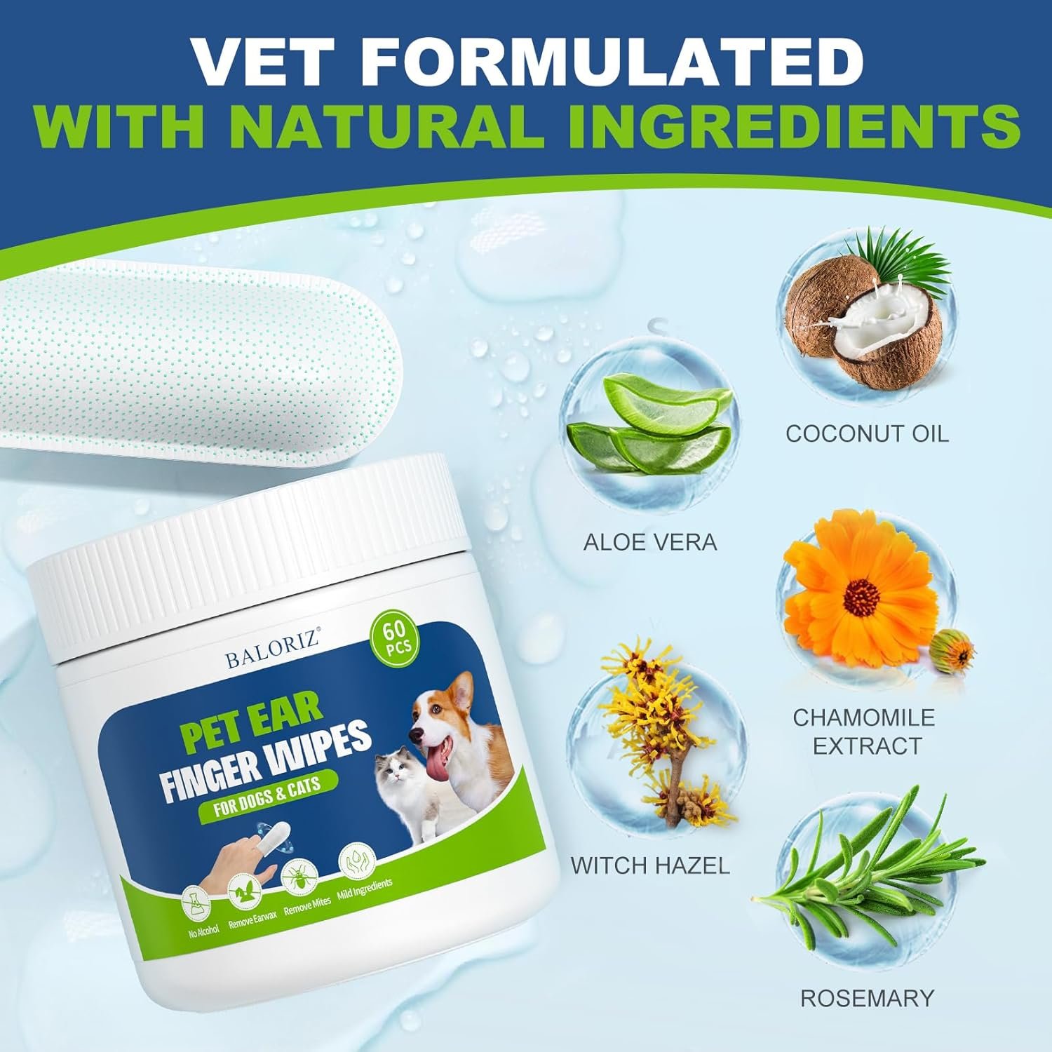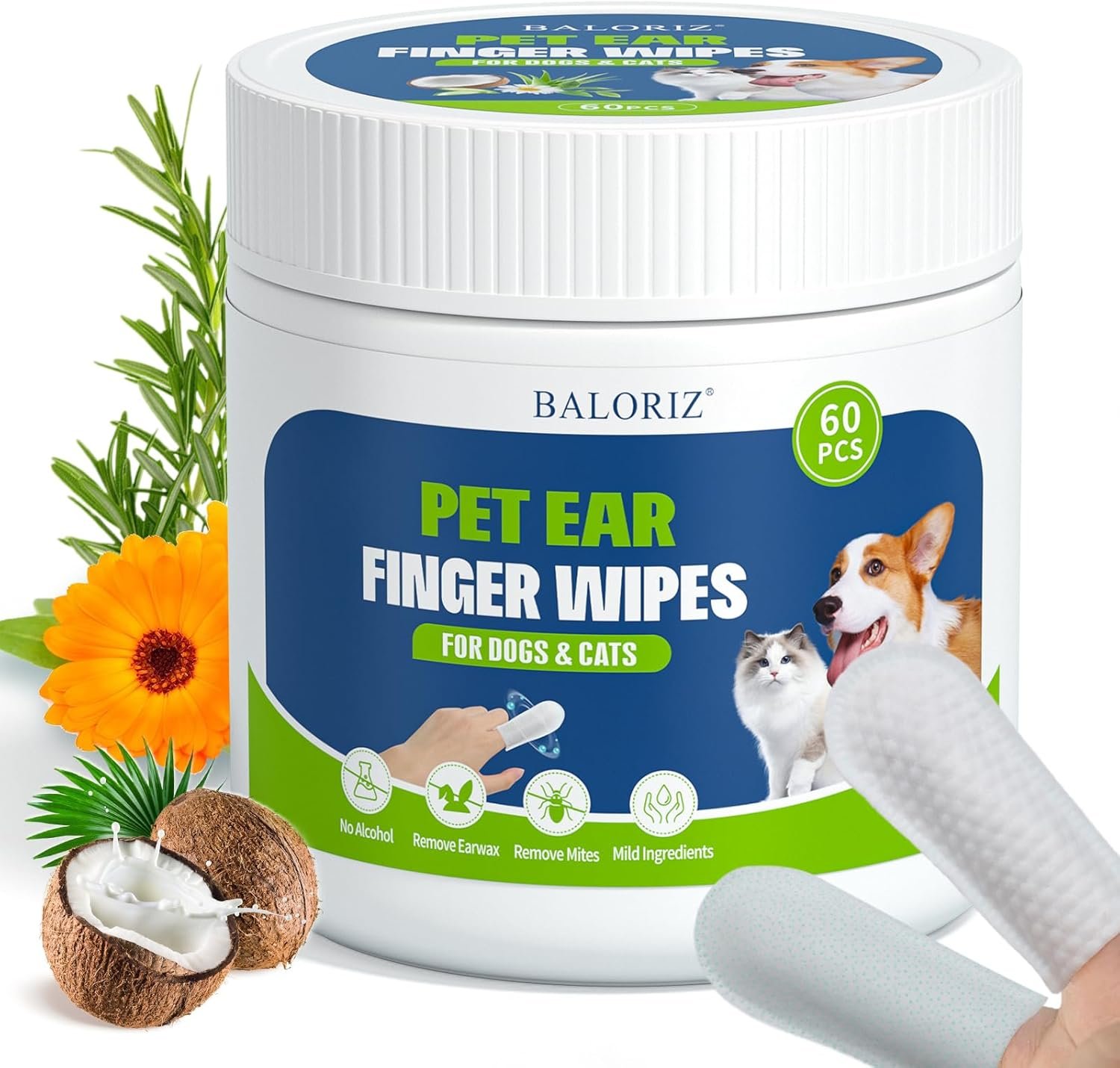 BALORIZ Pet Ear Cleaner Finger Wipes effectively reduces dirt and cleans wax buildup, sooths & deodorize, relieve ear itching, For regular cleaning of your pet’s ears, We work hard to keep your pet clean so you can keep giving them cuddles.