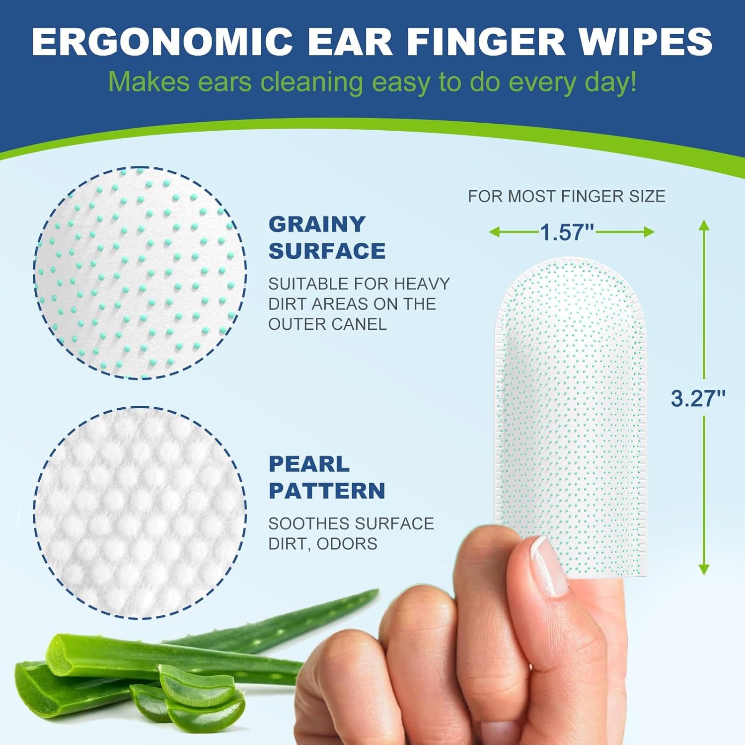 【Double-Sided Availability】- Our dog ear finger wipes are made of different materials on both sides.One side is made of nano-drop plastic particles can remove ear wax and debris, The other side pearl pattern can clean the ears without hurt. reduces odors while soothing your dog’s ears.