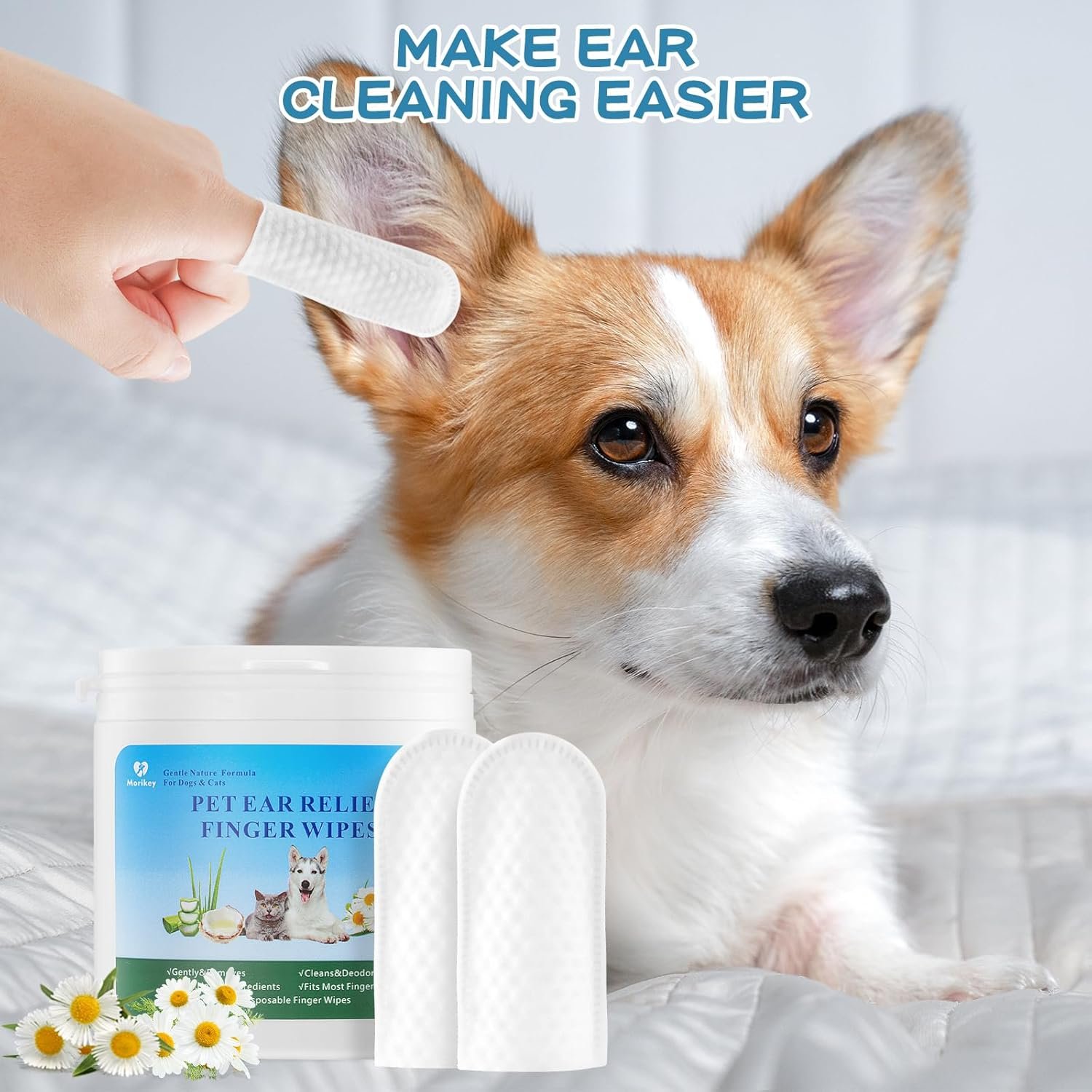 Natural Ingredients:Pet ear relief finger wipes with gentle nature formula for dogs & cats,which is non-irritating and does not contain alcohol or any other harmful chemicals.Natural ingredients including purified water, aloe vera juice,chamomile oil, glycerin,tea tree oil.Using our pet ear finger wipes will help safely and gently remove and discharge that can cause odor,and prevent infections, dirt buildup and earwax.Ensure your pet’s ear fresh and healthy at all times