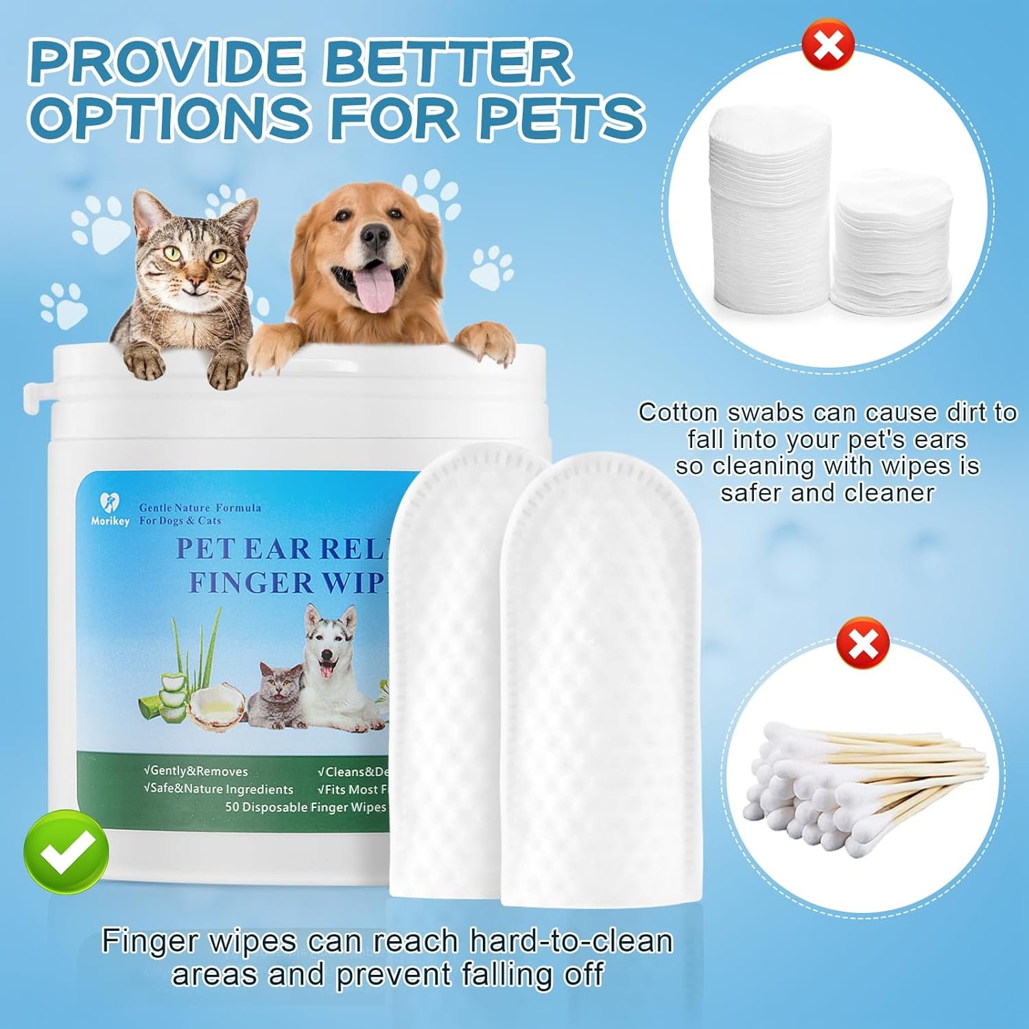 Effective ear cleaning:Our pet ear finger wipes made of high quality material that soft and skin friendly,aiming to eliminate pet’s ear odor and remove ear dirt,buildup and earwax gently and effectively. Use with Morikey PET Ear Cleaner for best results! Providing comprehensive protection for pet’s ear health