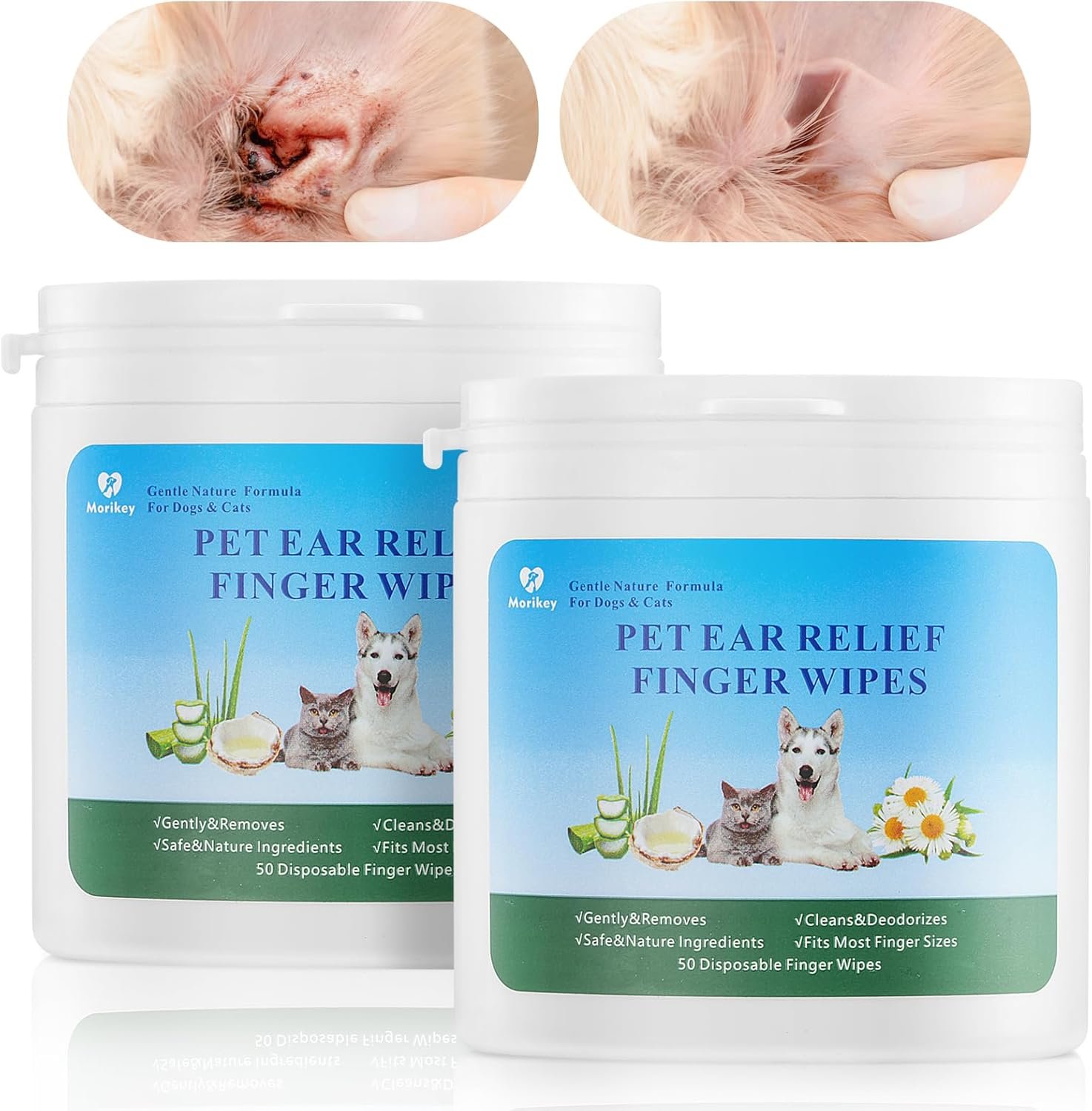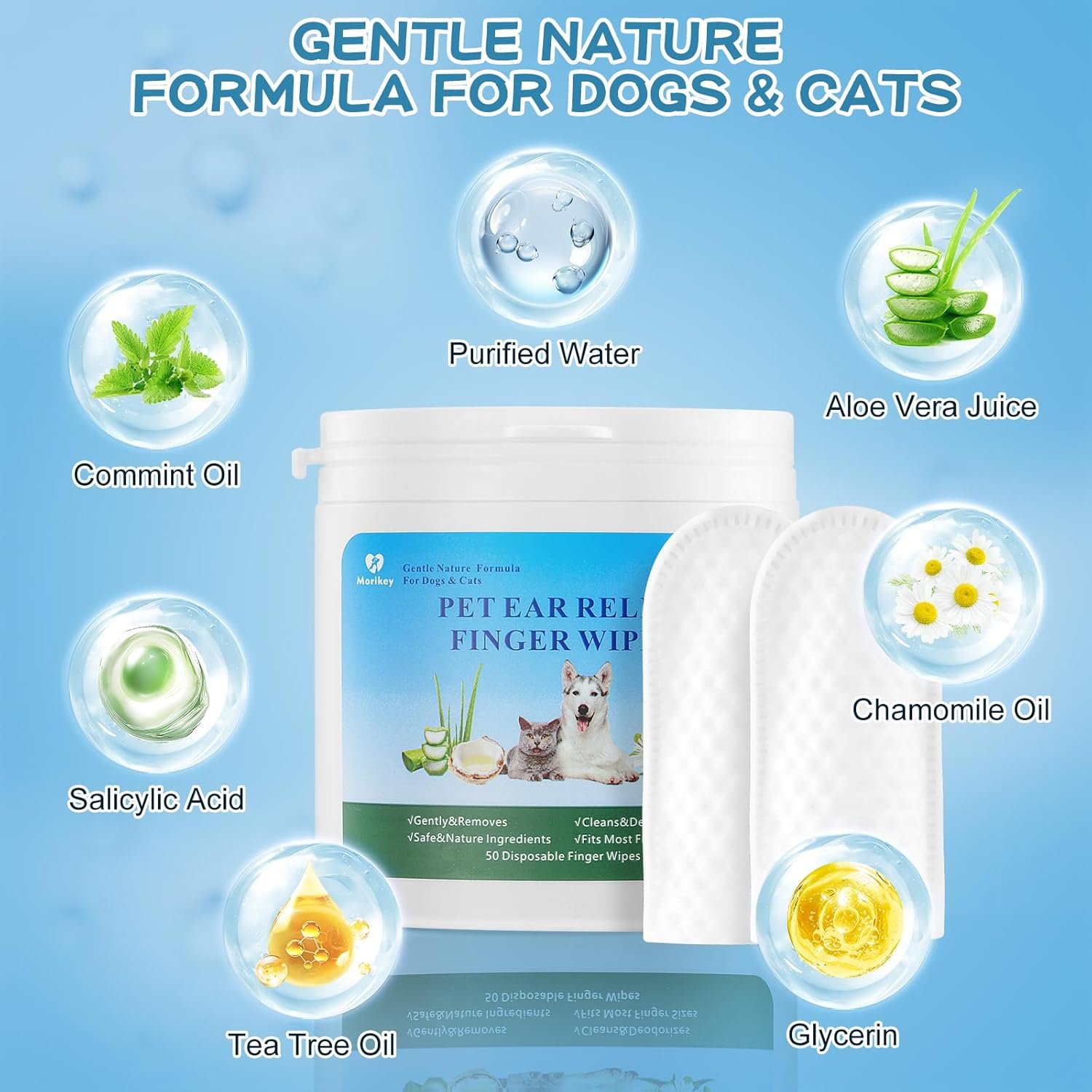 Natural Ingredients:Pet ear relief finger wipes with gentle nature formula for dogs & cats,which is non-irritating and does not contain alcohol or any other harmful chemicals.Natural ingredients including purified water, aloe vera juice,chamomile oil, glycerin,tea tree oil.Using our pet ear finger wipes will help safely and gently remove and discharge that can cause odor,and prevent infections, dirt buildup and earwax.Ensure your pet’s ear fresh and healthy at all times