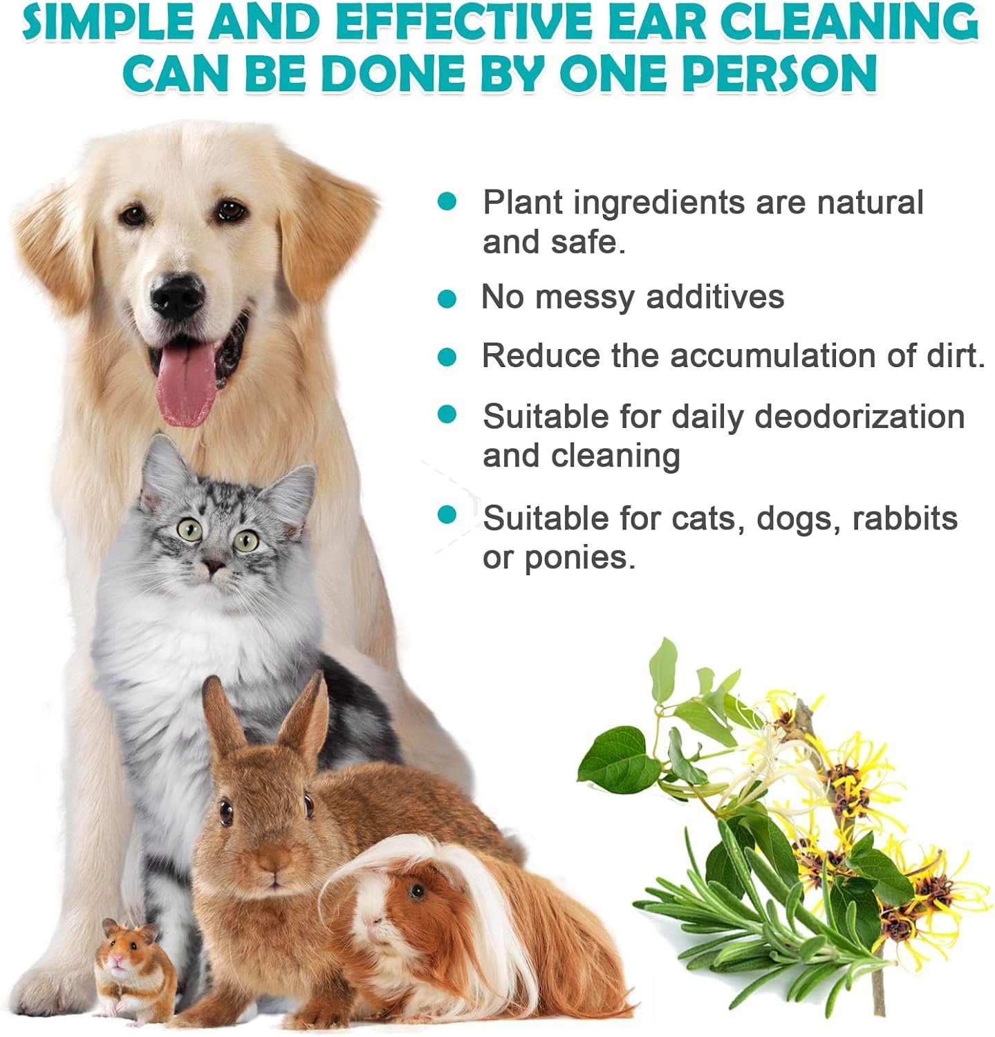【Gentle Cleaning & Odor Control】:Gently yet effectively reduces dirt and cleans wax buildup. Deodorizes Reduces odors while soothing your dog’s ears. For regular cleaning of your pet’s ears, ideal for weekly ear cleaning.Your dogs and cats ears deserve the best care!
