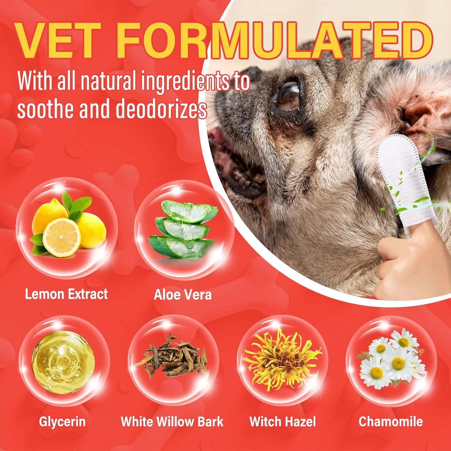 Hypoallergenic & Gentle: Contains 6 natural extracts, Lemon Extract, aloe vera, Chamomile, White Willow Bark, Witch Hazel, Glycerin, gentle enough for daily use; no any harsh chemicals, alcohol, synthetic dyes or perfumes, gentle for even the most sensitive pet