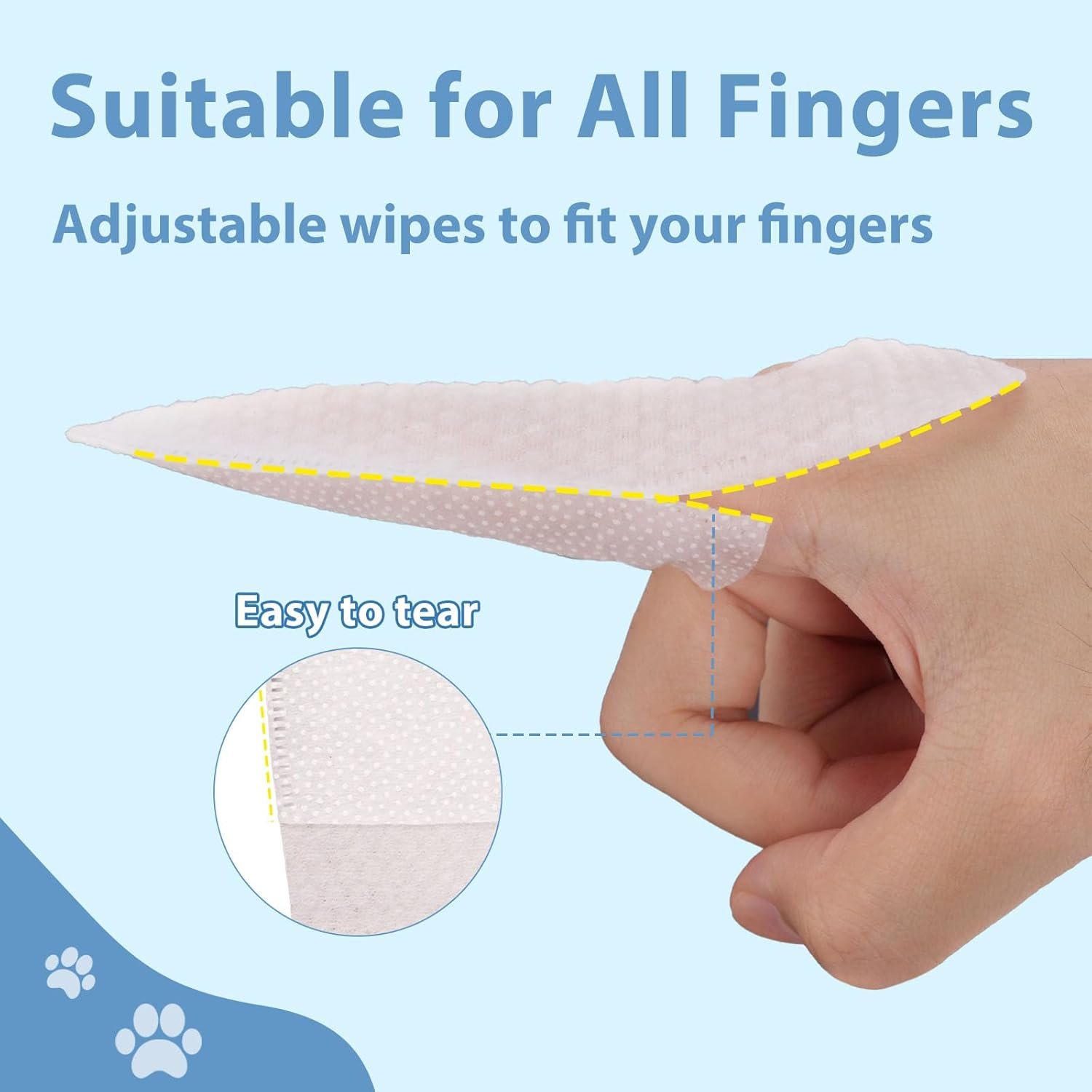 【Extra Large Sized & Convenient Application】Tinioey pet ear wipes measure 1.9 inches wide by 5.12 inches long, and the bottom of the finger sleeve is tearable. Whether your fingers are long or short, small or large, our wipes can fit your fingers.These ear wipes for pets come in a finger-sized design, making them easy to use and maneuver, allowing for precise cleaning without the need for additional tools.