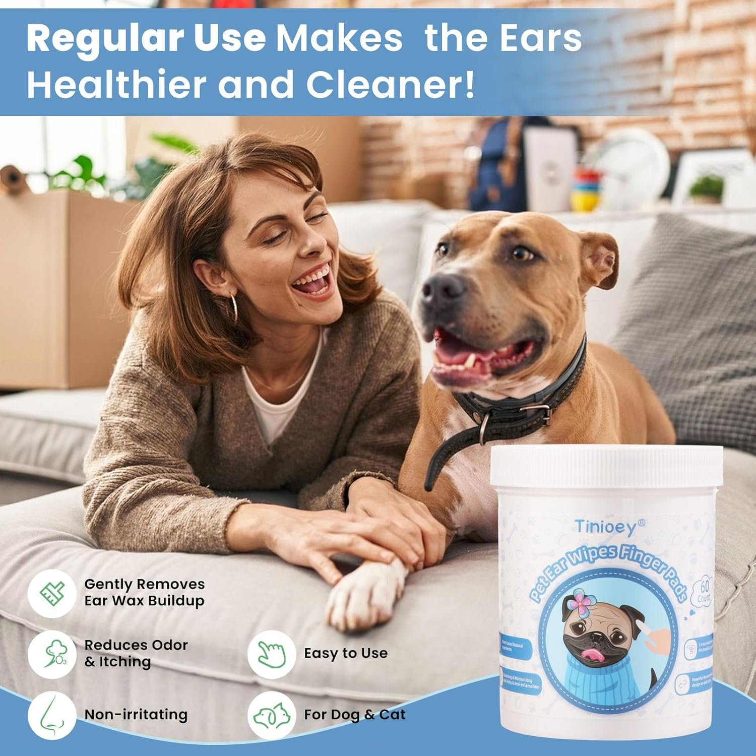 【Specially formulated】 Tinioey dog ear wipes finger is designed with a gentle yet effective formula specifically for cleaning dog’s ears to relieve itching, discomfort and inflammation of your dog’s ears.