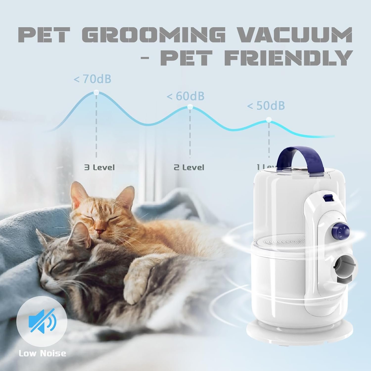 【3 Adjustable Suction Levels and Low Noise Design】Our dog grooming vacuum cleaner can choose low/medium/high 3-speed suction (3kPa/6kPa/10kPa) according to the length of pet hair. Noise reduction technology adopted by the machine allows the noise of the machine to be as low as 50dB when operating in low suction mode. When using the pet grooming kit for the first time choose the lowest mode. After your pet gradually adapts,adjust the suction power to avoid stress reactions in your pet companion.