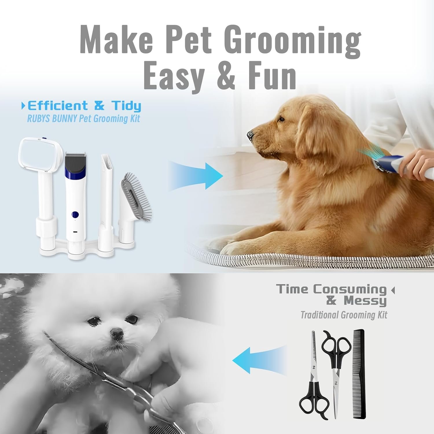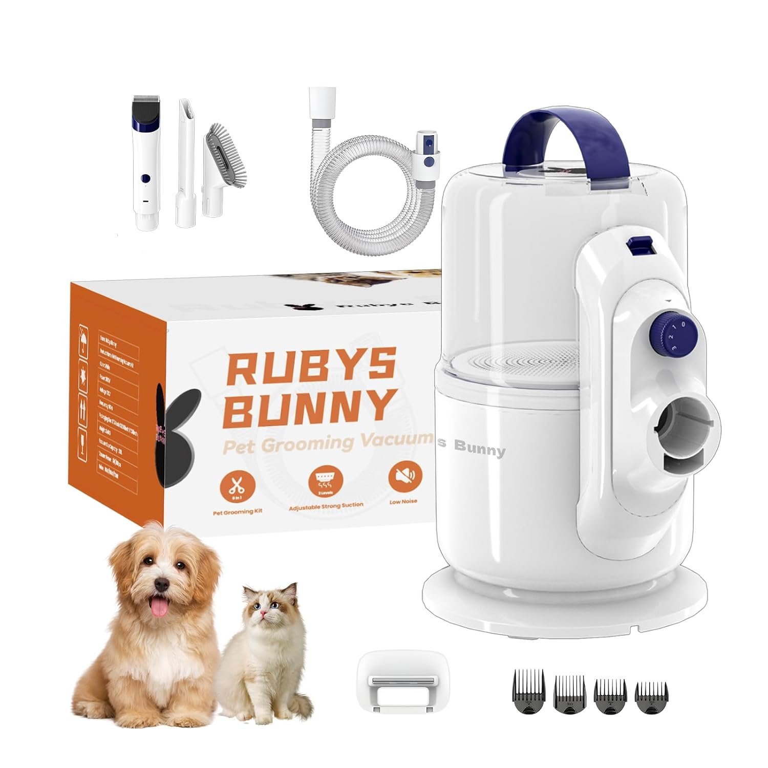 RUBYS BUNNY Dog Grooming Kit,Pet Grooming Vacuum with 2.5L Dust Cup and 3 Suction Mode,Low Noise Dog Hair Vacuum with 6 Pet Grooming Tools for Dog & Cat & More Pet Shedding Grooming and Home Cleaning