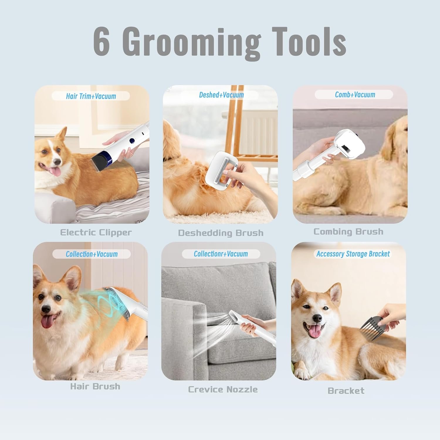 Dog Grooming Kit, dog grooming vacuum, dog clippers for grooming, with 6 Proven Grooming Tools for Dogs Cats and Other Animals, 2.5L Dust Cup and 3 Suction Mode