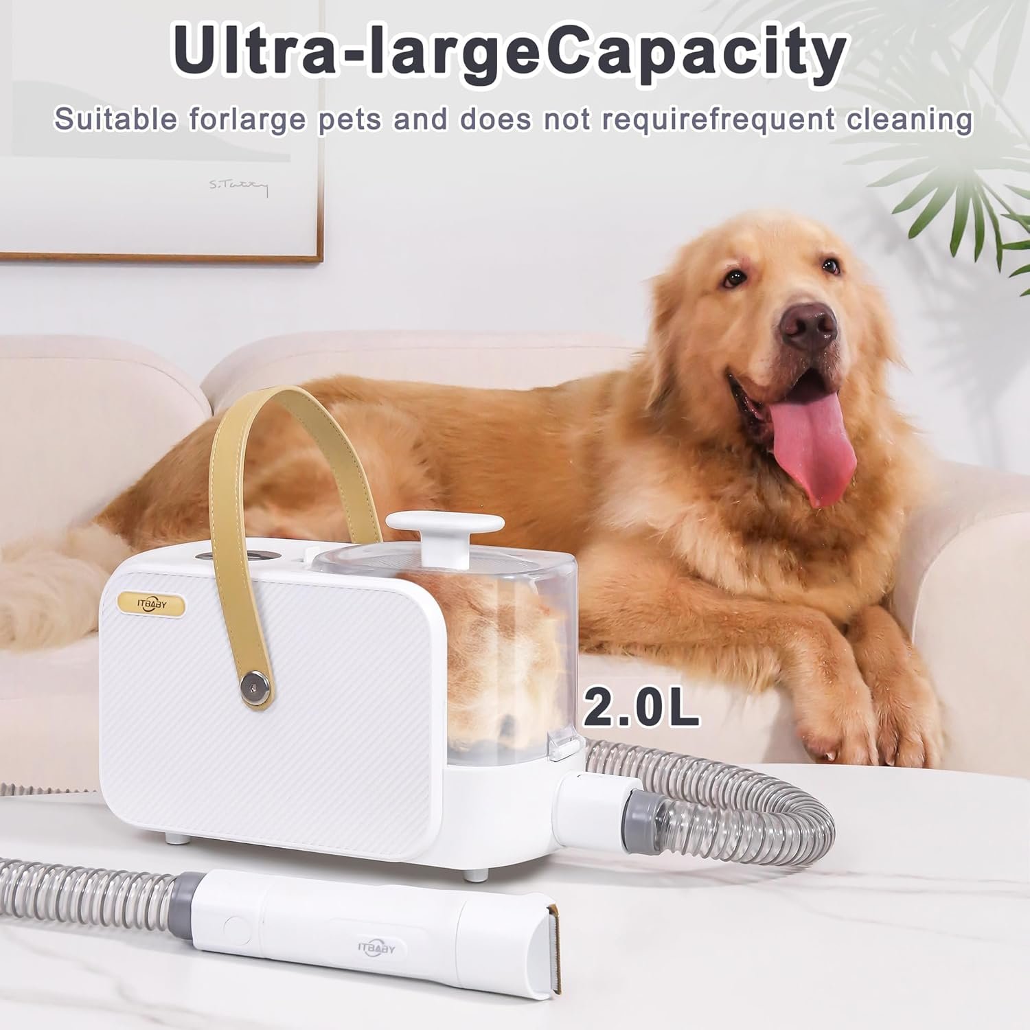 2L Dust Cup: ITBABY equippe with a 2L dust cup that can be used for grooming two large dogs—twice as much as other products of the same type. The hair collector can be opened with one finger to complete the non-contact cleaning of the hair collector. No need for much cleaning.