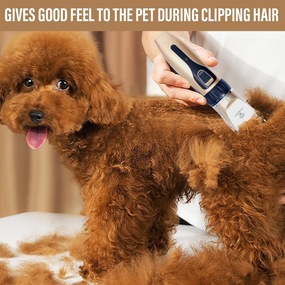 Now it’s time for the main grooming! Use the BougiePaw cordless clippers to trim your dog’s fur to the desired length. Work carefully and patiently, so your pet can enjoy a smooth and stress-free grooming session.