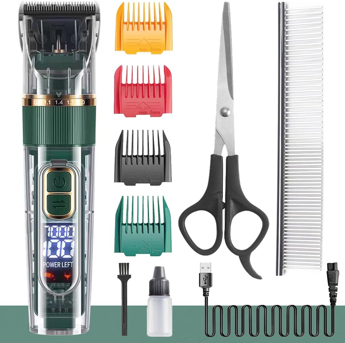 Dog Hair Clippers Kit Low Noise Heavy Duty Pet Hair Shaver Trimmers Set,Cordless Pet Grooming Clippers for Dogs Cats