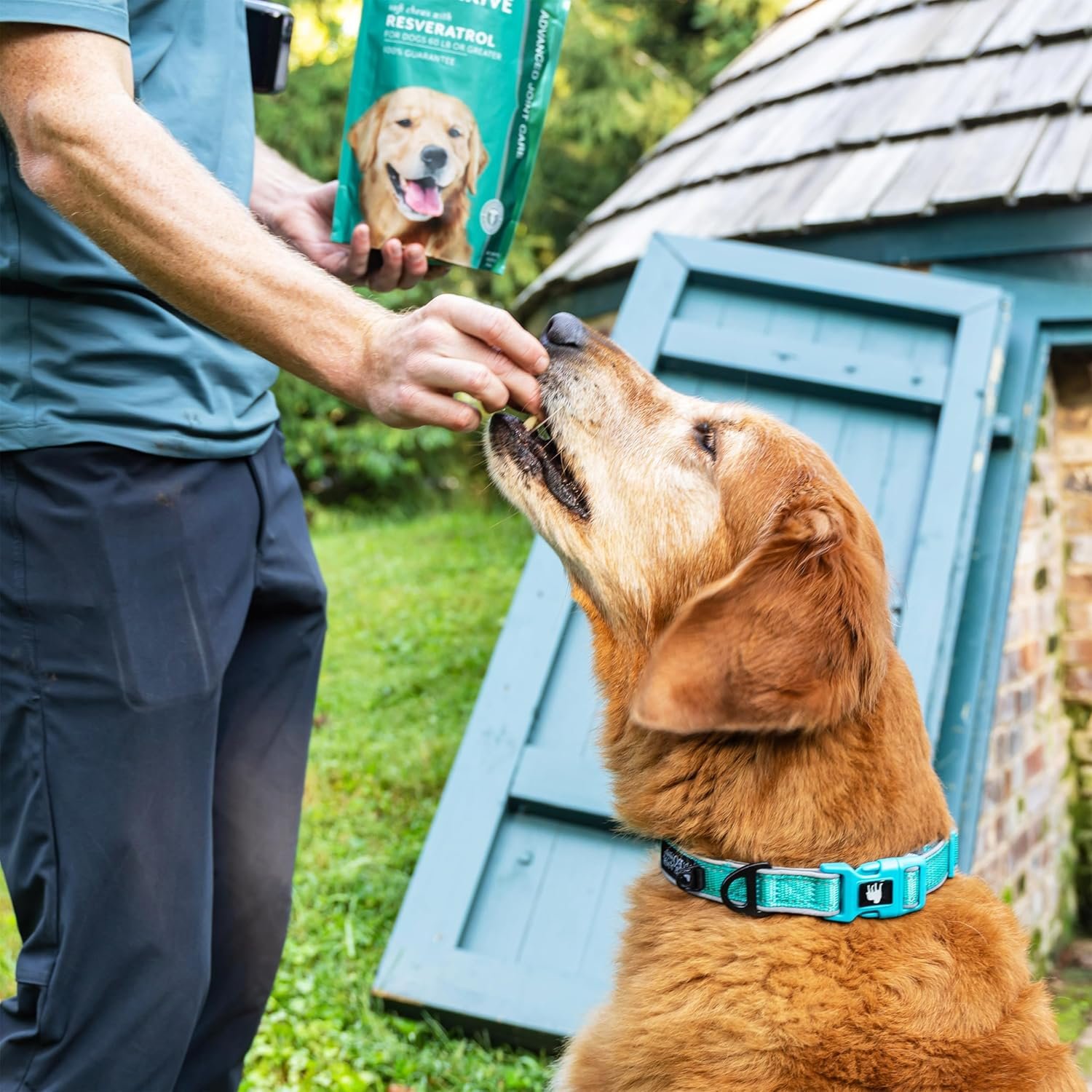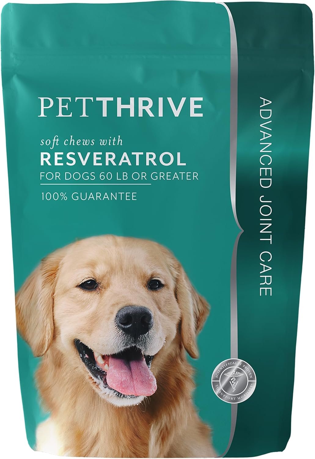 FEATURES RESVERATROL – Resveratrol is a naturally occurring antioxidant found in certain fruits and legumes, like blueberries, grapes, pistachios, and peanuts. Research has shown Petthrive joint supplement for dogs supports soundness, mobility and optimal joint movement.