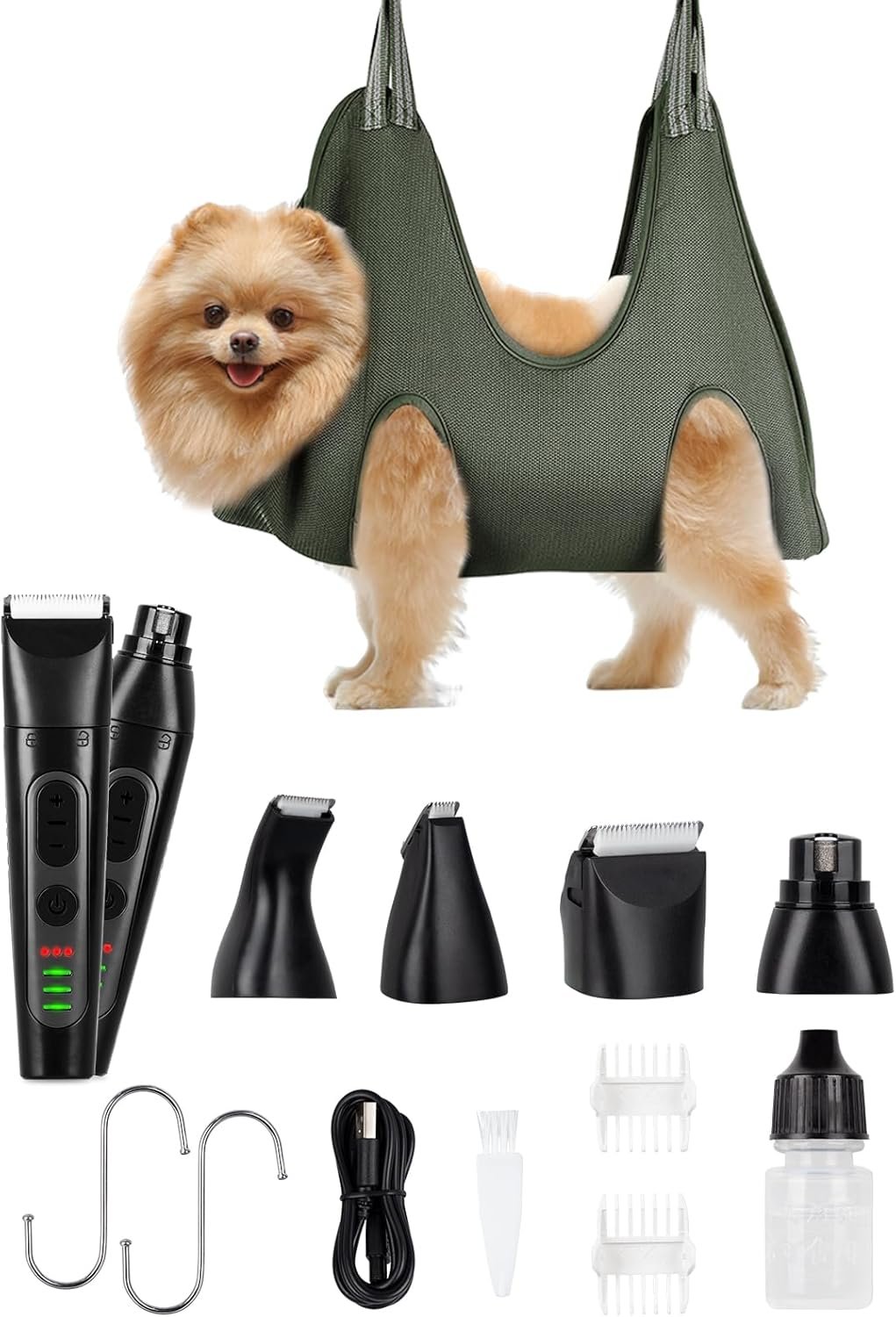 LOW NOISE & HAMMOCK: Our dog clippers for grooming silent motor reduces noise by 17%, even timid pets won’t be scared, use it with pet hammock to keep your cats and dogs calm and won’t move around, and better help them to groom their fur and paws. Small pet grooming hammock measures 18.9 inches (L) x 23.8 inches (W). Suitable cats and small dogs up to 55 lbs.