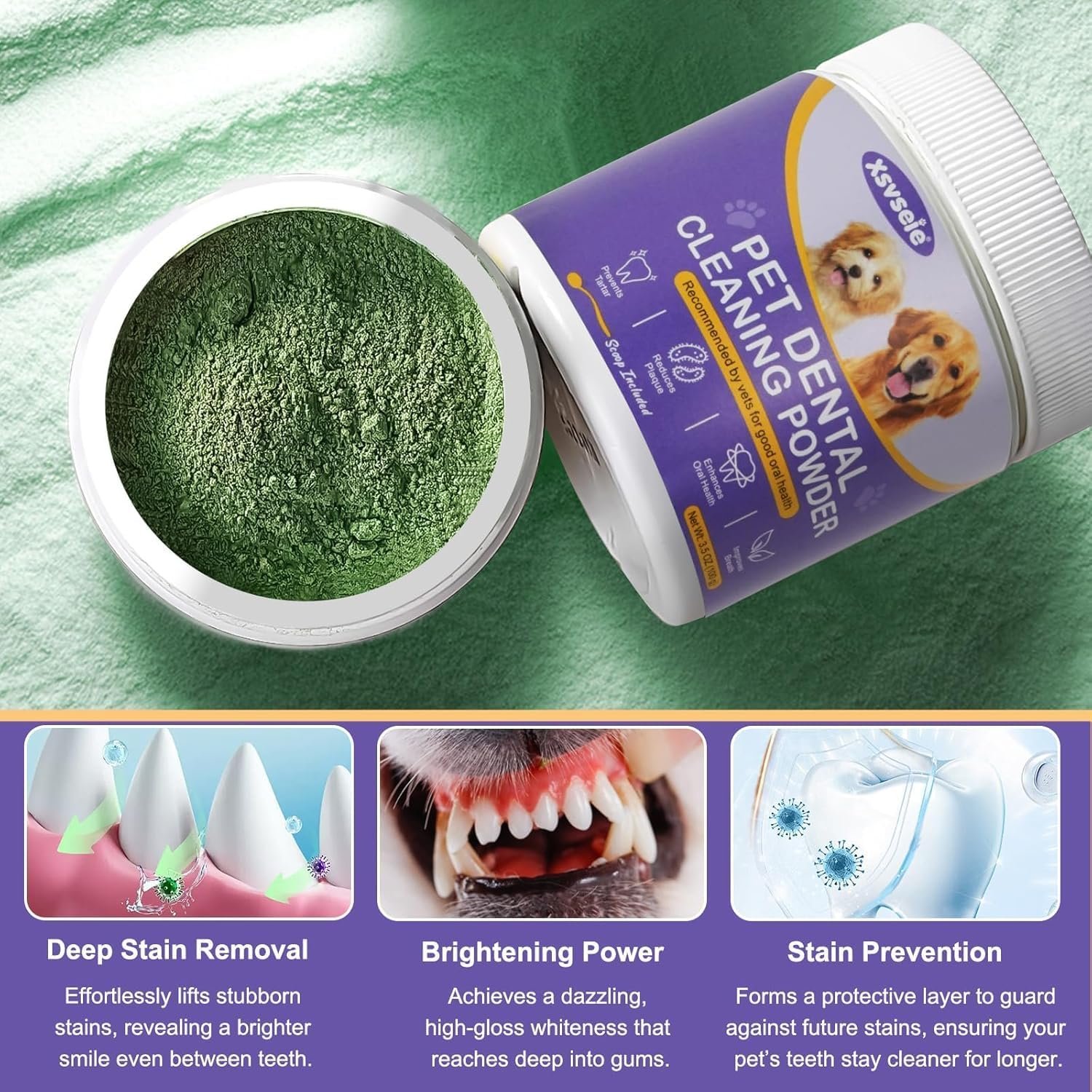 Dog Tooth Powder is Suitable for Dogs of all Breeds, Ages, and Sizes: Pet tooth cleaning powder is an innovative dental solution that provides a comprehensive cleaning experience without complications. It is designed to remove stubborn dirt and grime from hard-to-reach areas that traditional brushing methods may not reach. Veterinary professionals have carefully reviewed the formula and combined a blend of probiotics, green tea, and brown algae to effectively fight tartar buildup and unpleasant odors.