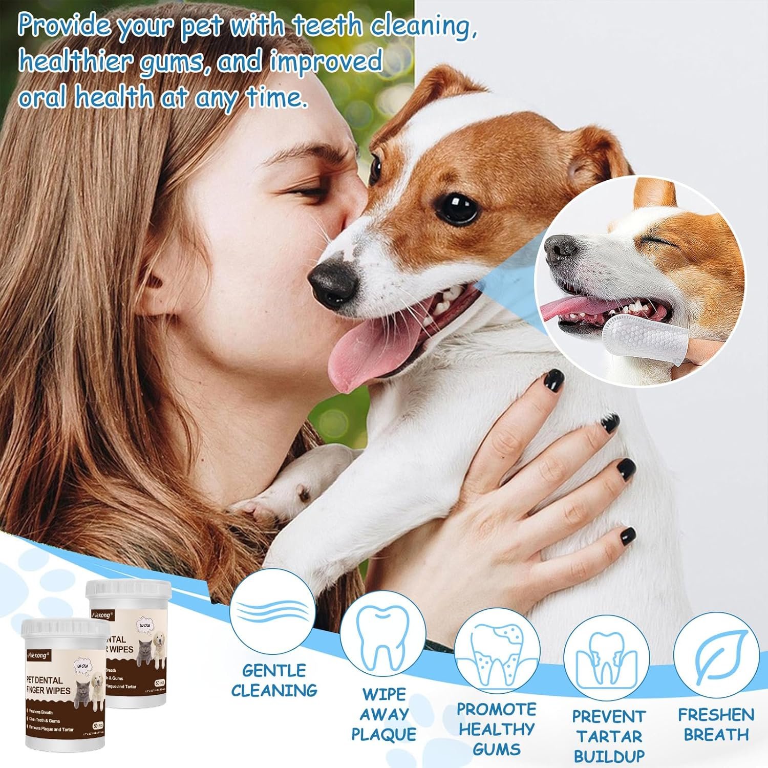 Pet Dental Finger Wipes for Dogs: Our pets need regular dental care, Eliminate debris and food residue to prevent the buildup of tartar and plaque, as well as gum disease, tooth decay, and other oral issues. Use dog tooth-cleaning finger wipes daily to establish a comprehensive dental care regimen, ensuring your pets stay clean and breathe fresh air.