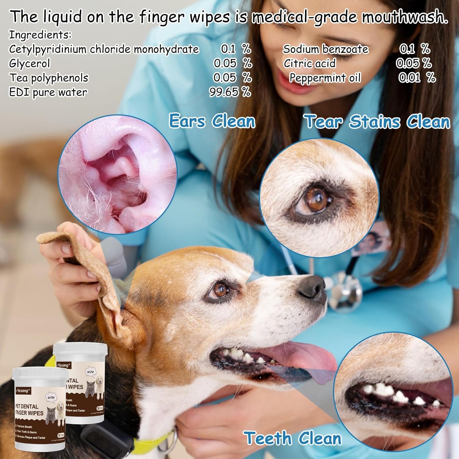 Safe and Natural Ingredients: The liquid on the finger wipes is medical-grade mouthwash, alcohol-free, with no parabens & fragrances, and formulated in a gentle and effective formula designed specifically for pet tooth cleaning. Even if licked or ingested by pets, disposable wipes are still safe.