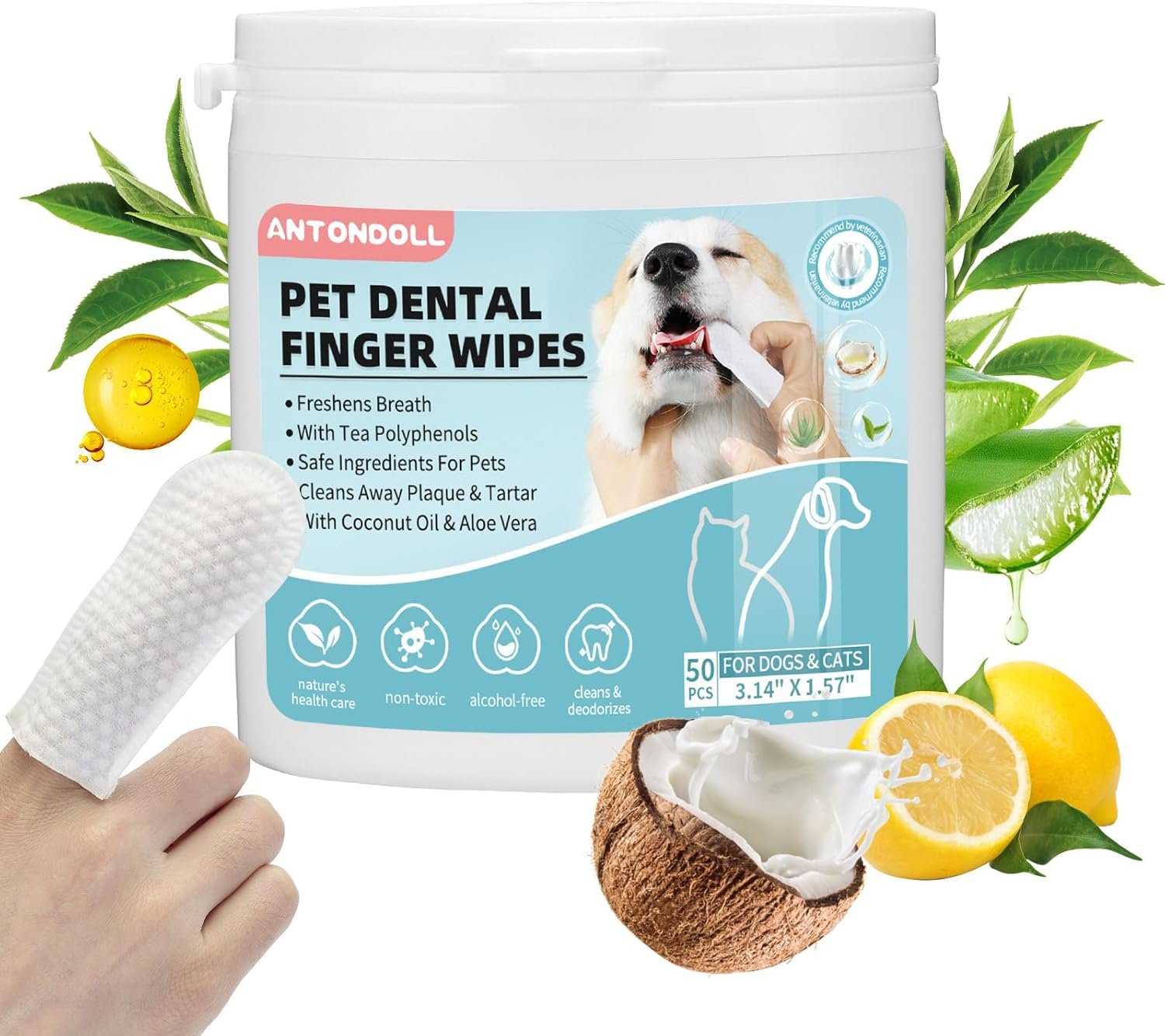 VERSATILE FOR ALL PETS: ANTONDOLL dog tooth brushing kit can also be used for cats, and other pets. Use our dog teeth cleaning wipes daily to help your pet have a cleaner and fresher smile.