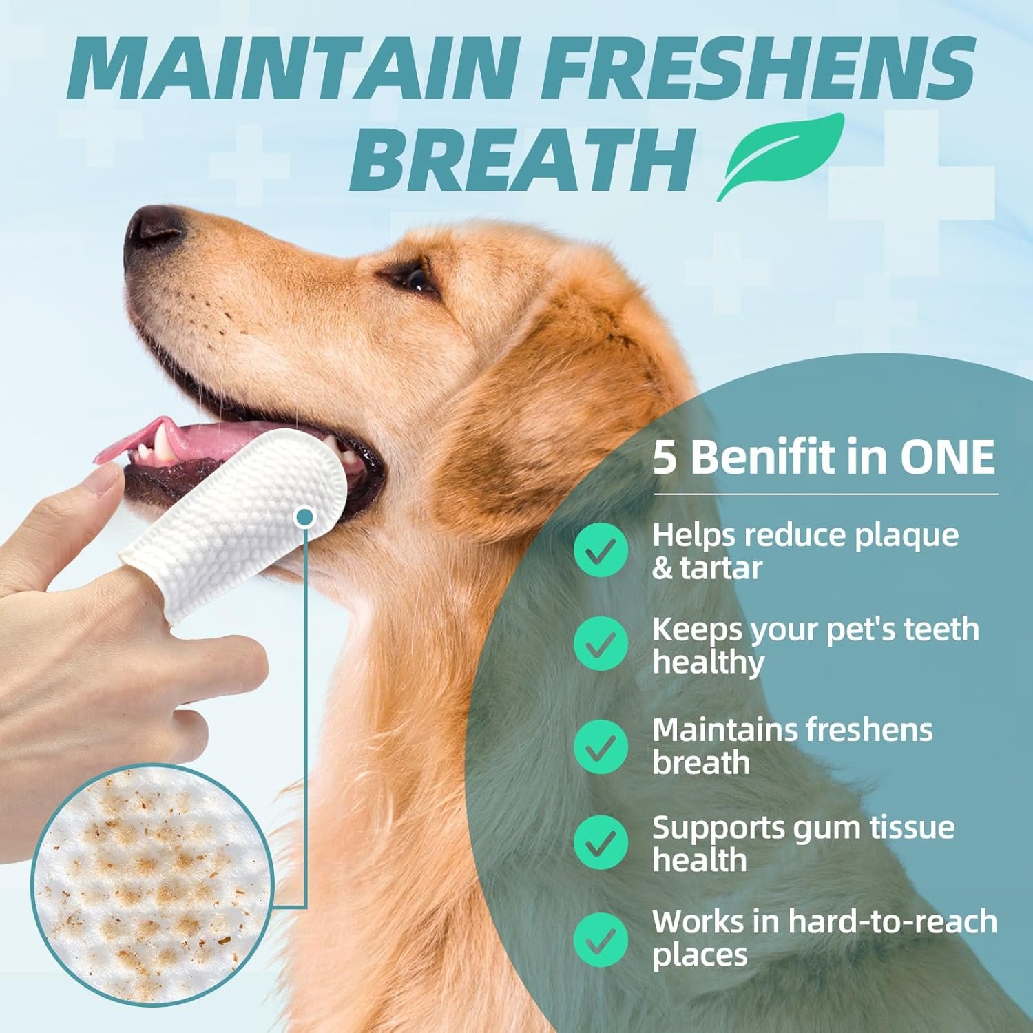 CLEANS TEETH & GUMS: Just simply wipe with gentle dog dental wipes, and keep your pet’s teeth and gums clean and healthy. Our innovative dog tooth wipes feature a bumpy side with brushing beads, this design effectively prevents tartar and plaque buildup. No toothbrush, no mess.