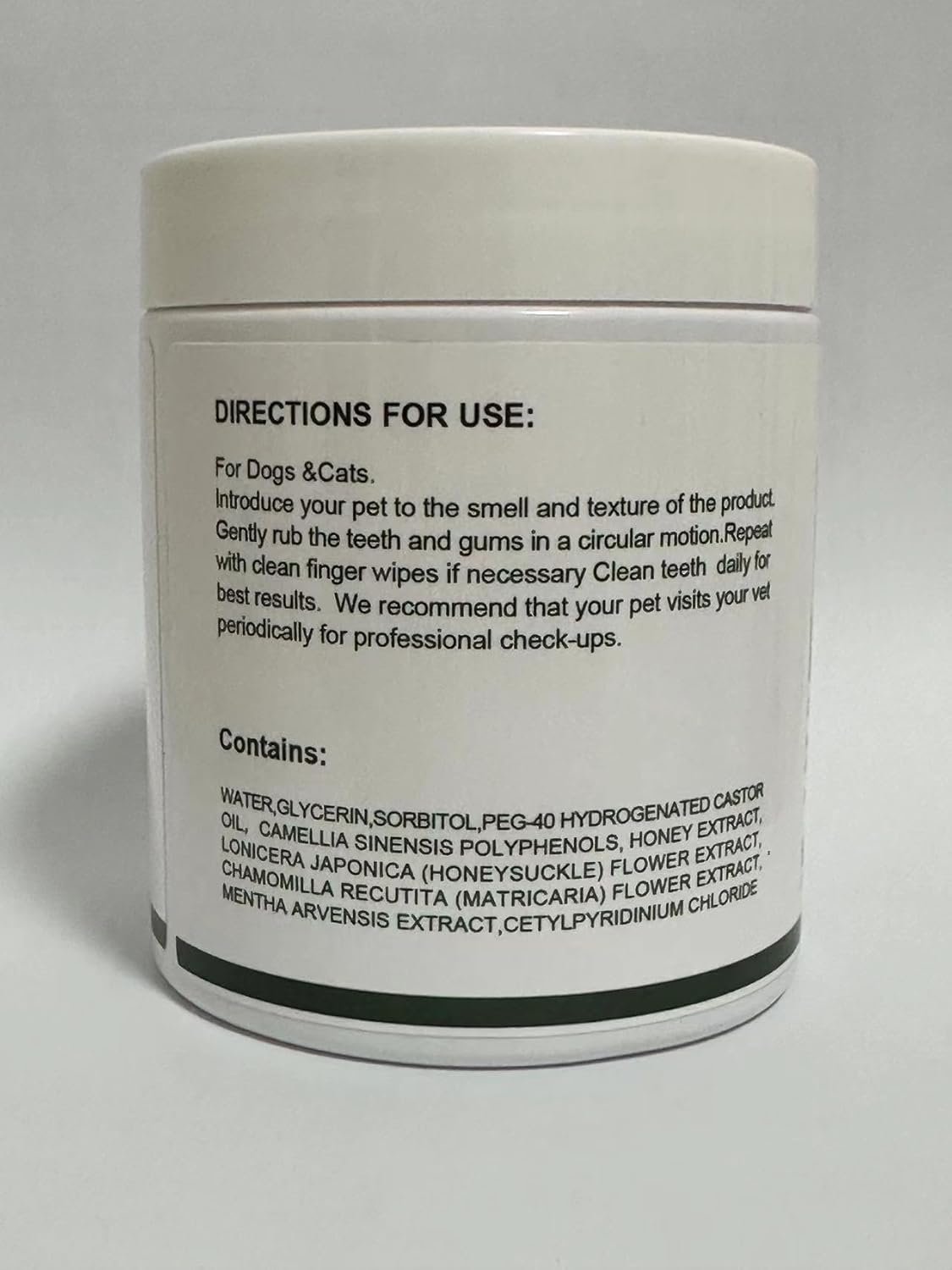 Pet friendly: the way it is used and the feel of it is acceptable to pets, they will enjoy the massage and cleaning without toothbrush and toothpaste.