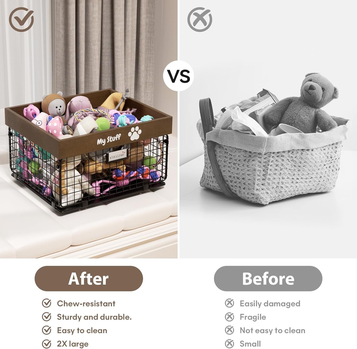 Stylish and Functional Design: dog toys basket features a well-made and aesthetically pleasing design that fits in with any home decor, providing a shabby chic look that is both functional and stylish