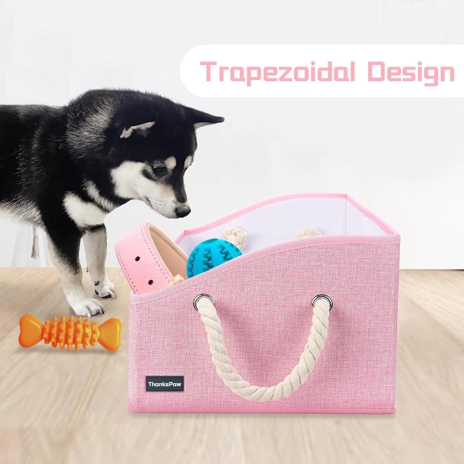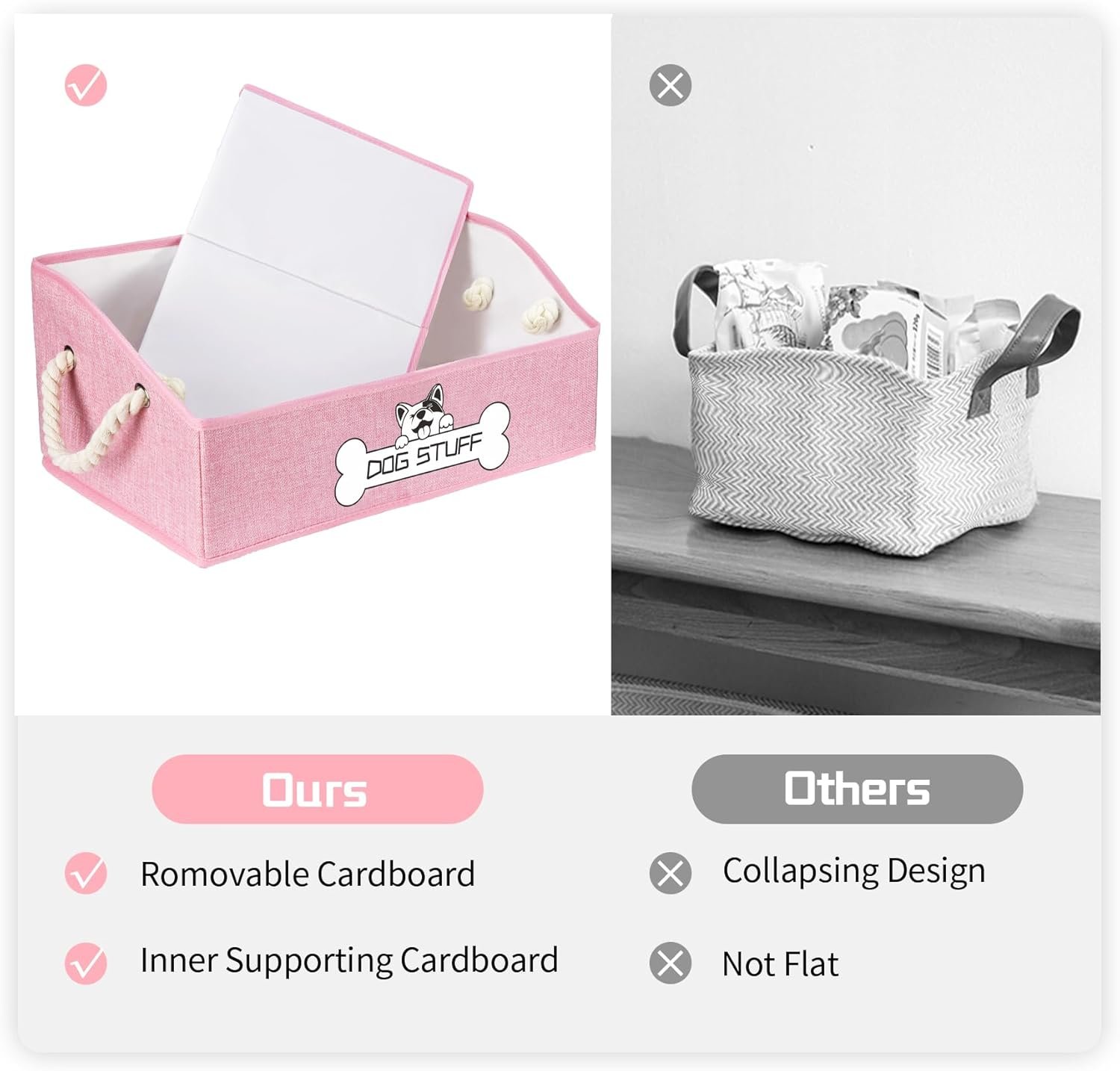 Premium Quality: The dog toy bin is made of canvas with movable cardboard at the bottom, which is durable, stable, and firm. Sturdy thickened weave ropes can provide soft gripping and are easy to move even with a heavy load.