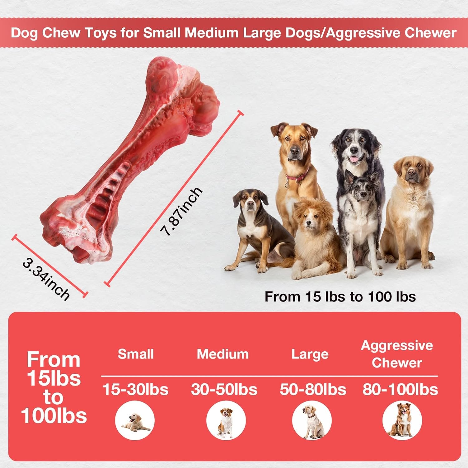Natural Bone Design: The large chew toy is made using the real flavor and scent of beef, which has an enticing beef aroma that increases your dog’s interest, attracting them to repeatedly chew the toy and release their alone-at-home stress.