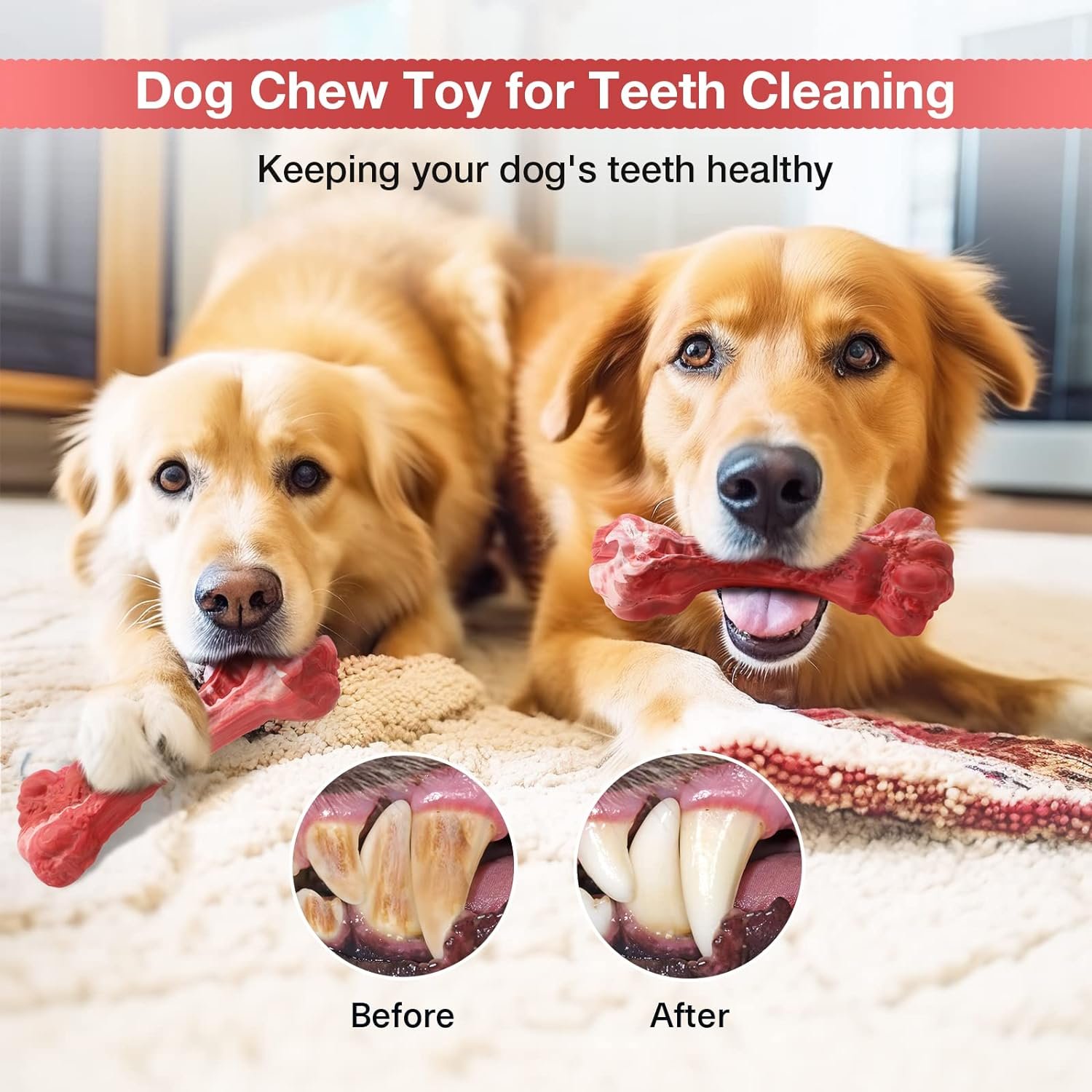 Beef Flavor: We designed a realistic bone shape based on dogs’ chewing habits, which allows your pet to easily recognize, creating a positive toy association for your dog. The chew toy comes with a bone texture and convex points that are beneficial for teeth cleaning during your dog’s chewing, thereby reducing oral problems in your beloved pet.