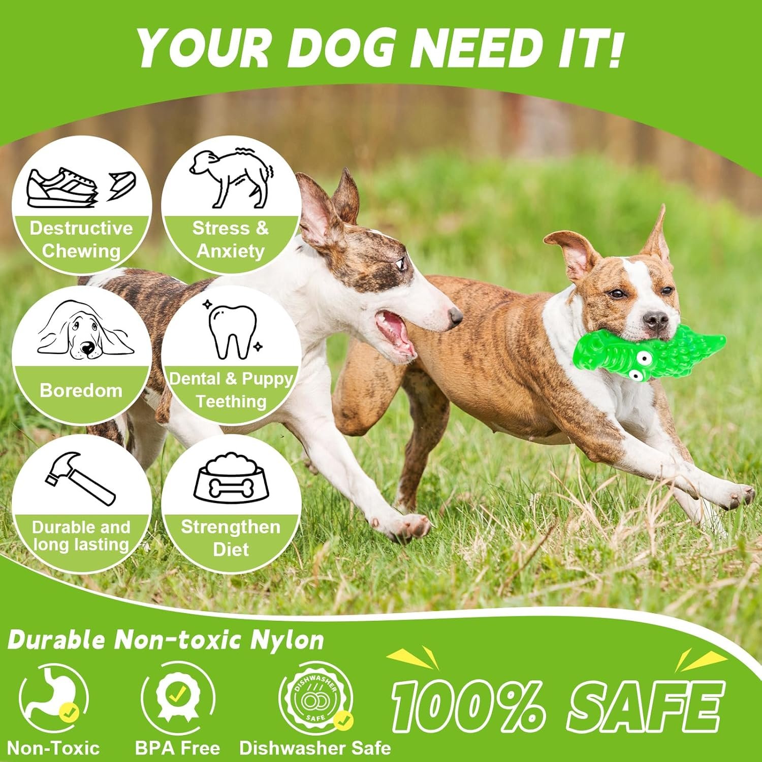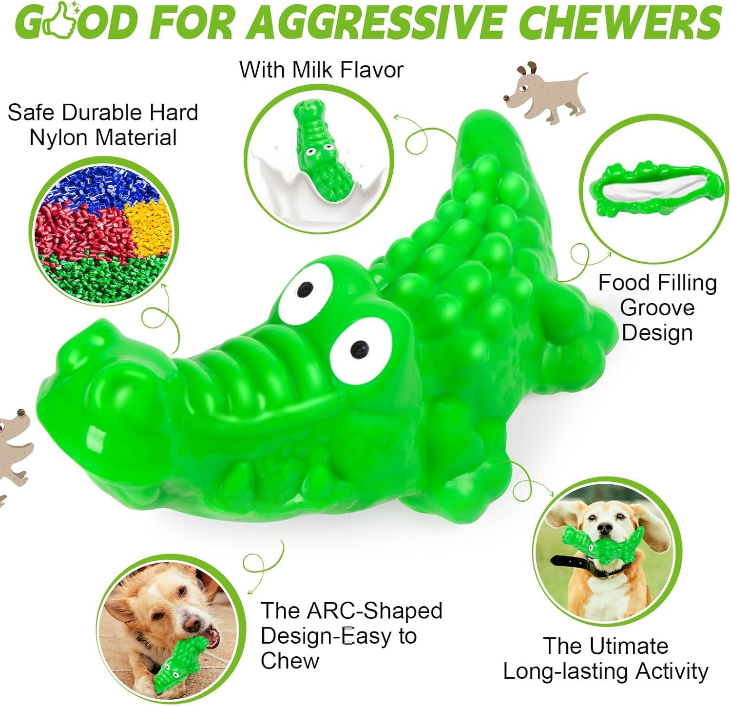 Safety Is Our Top Priority – When it comes to beloved pets.Our durable nylon dog chew toy features crocodile heavy-duty design,Our dog chews have undergone rigorous testing to ensure the safety of their materials and structure. Will not break in half during use. It’s been extensively tested on a variety of varieties, including powerful chewers such as pitbulls,golden-doodles, german shepherds,rottweilers, malinois, labradors, poodles,many more. durable and suitable for dog chewing.for safety reasons,and dogs should always be supervised by their owners while chewing