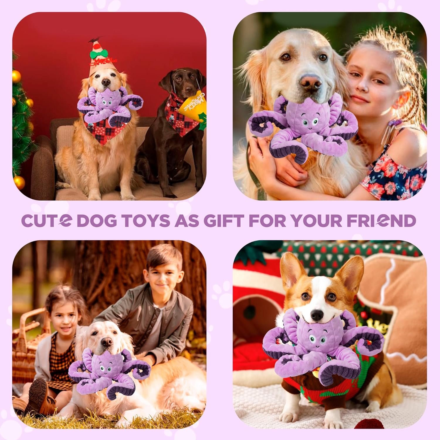 Dog Toys: Our plush chew dog toy is very cute and Christmas is coming soon. It can be given as a toy to your dog. He will be very happy to see it.