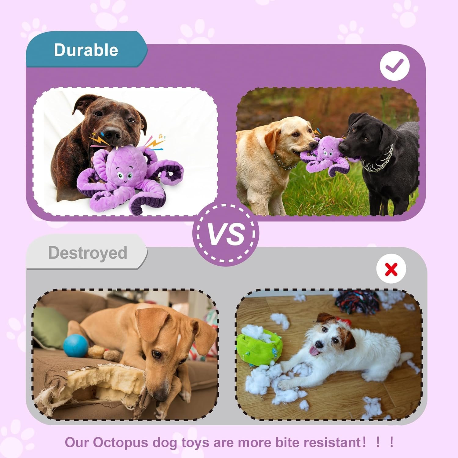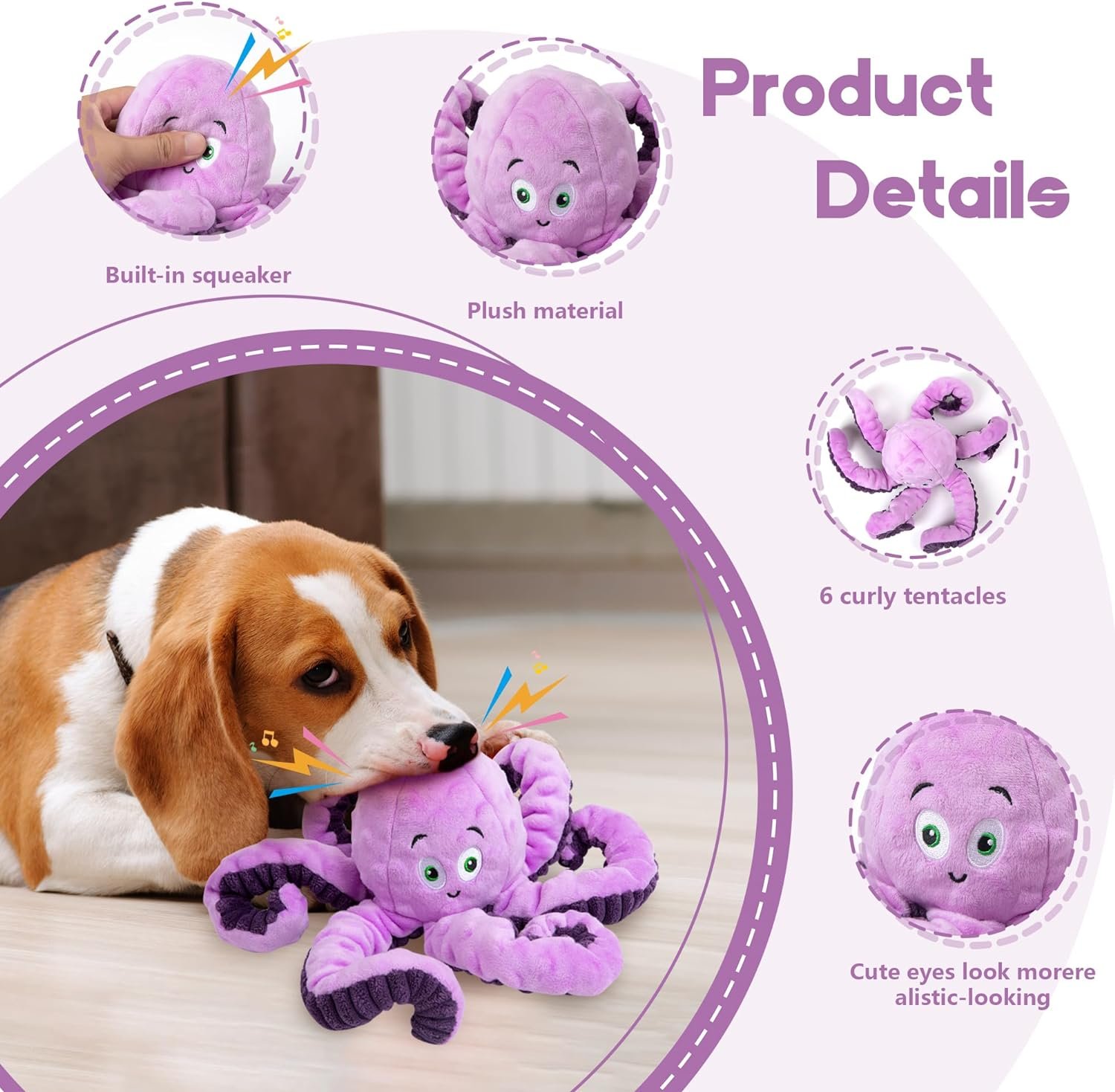 Octopus Dog Squeaky Toys: Our plush chew dog toys have a built-in squeaking sound inside, and the whistle will sound when the dog bites, which will attract your dog’s attention and keep playing with the cute dog toys.