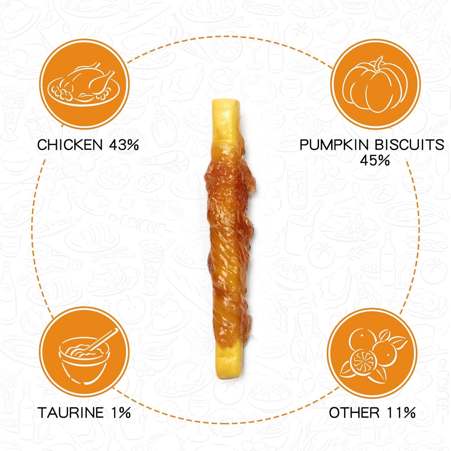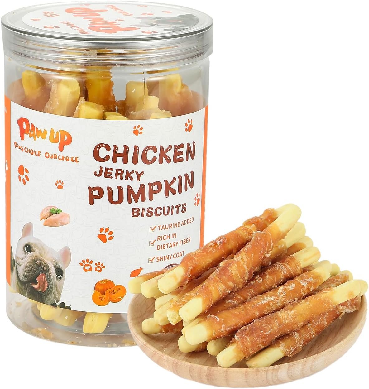 Taurine Added: Give your dog this taurine contained Chicken Jerky Pumpkin Biscuits to help improve brain development, retina protection and heart improvement of your little pup