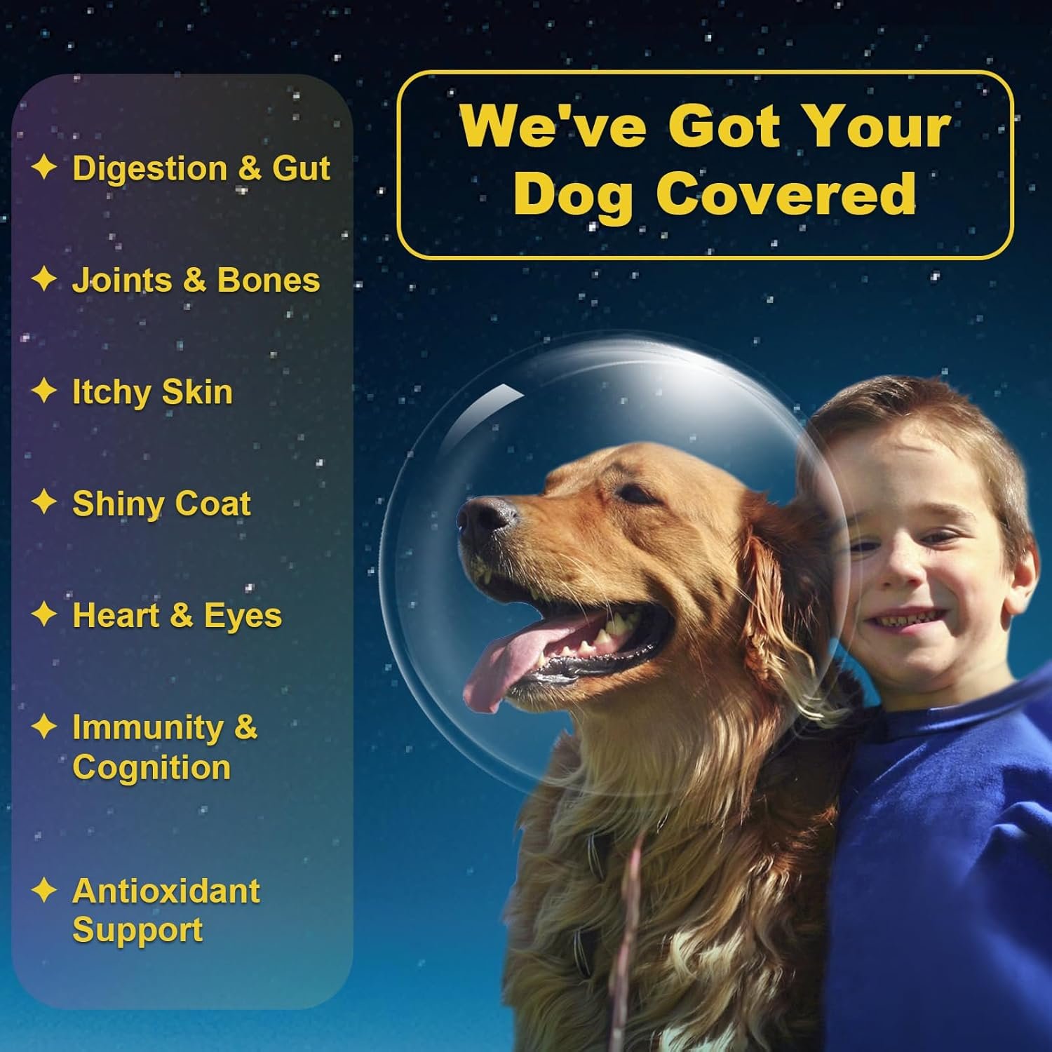VITAL ANTIOXIDANT FOR SKIN & COAT HEALTH – Omega 3, 6, Vitamin E and Quercetin work together to support skin and coat health, help relieve itchy skin & scratching. The multivitamin for dogs helps accelerate the healing process of skin issues and protects your dog from free radical damage, support a healthy and radiant appearance from the inside out. With consistent use, you’ll notice your dog’s coat becoming shinier, more lustrous & less shedding, reflecting their inner vitality and happiness.