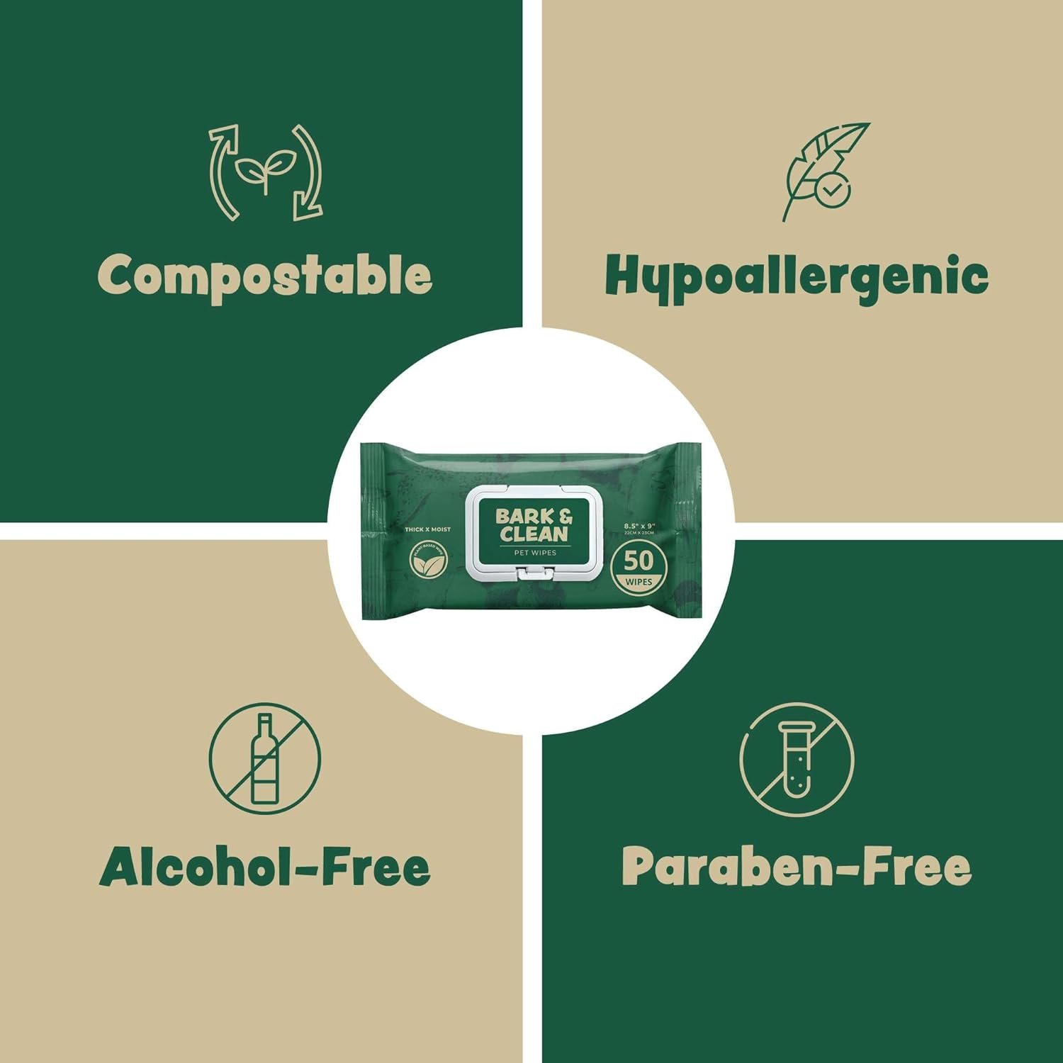 Our puppy wipes are compostable, hypoallergenic, alcohol-free, and paraben-free.